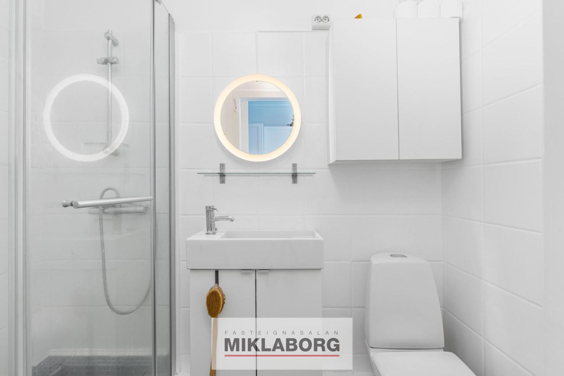 Eignin er 40,9 m², eigninni fylgir aðstaða í risi en þar er tengi fyrir þvottavél og einnig eru sameiginlegar þak svalir. Einungis tvær íbúðir á hæð.