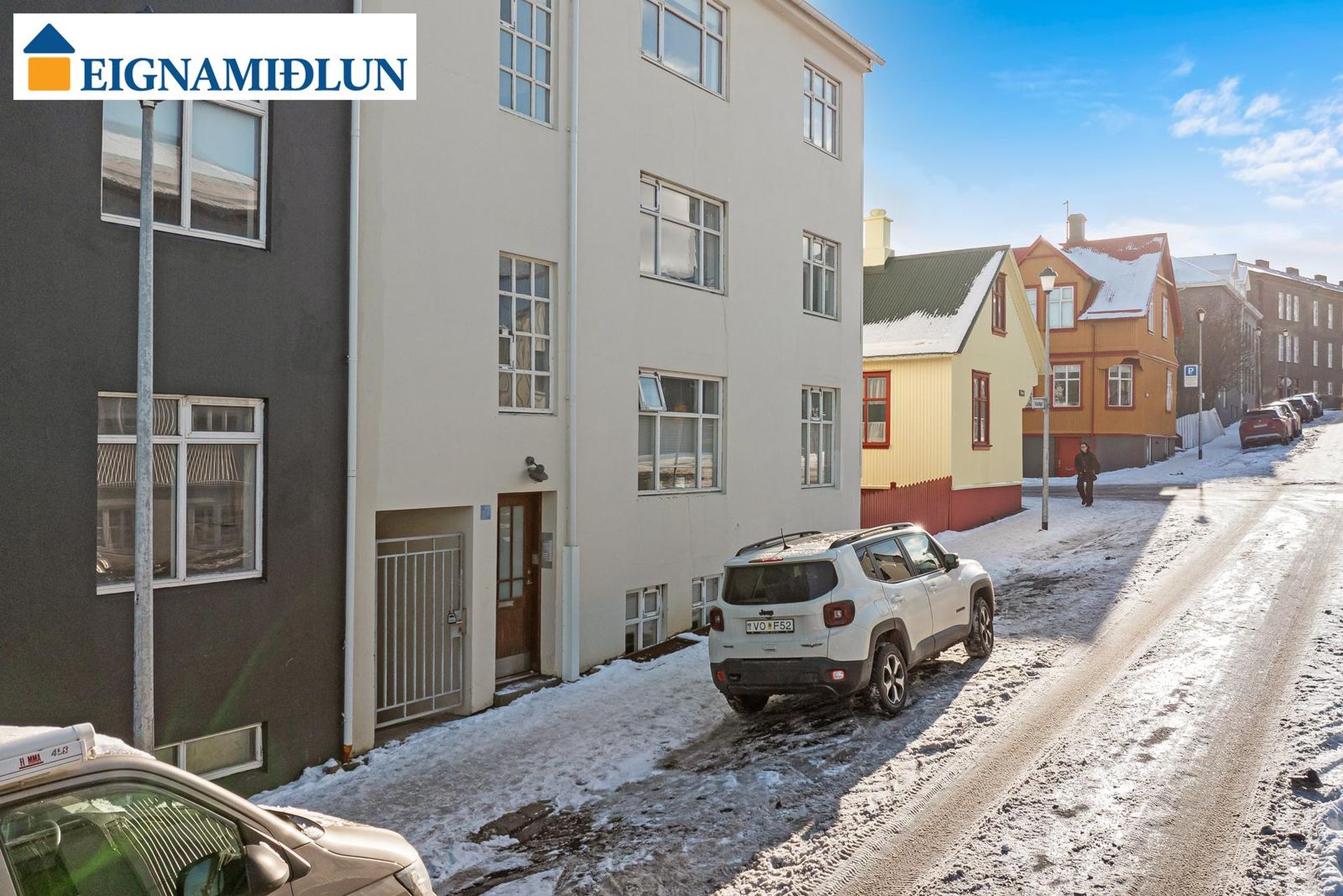 Afar björt og smekkleg, fjögurra herbergja hæð í fallegu, steinsteyptu þríbýli í miðbænum. Íbúðin er á 2. hæð og er ein íbúð á hverri hæð. Hæðin er smekklega hönnuð með fallegum gólf- og loftlistum sem setja svip á rýmin. Hæðin er mikið endurnýjuð en m.a. hefur verið skipt um eldhús, baðherbergi uppgert og öll gólfefni og innihurðir endurnýjaðar. Tvö góð svefnherbergi og tvær stofur. Auðvelt væri að breyta borðstofu í þriðja svefnherbergið. Frábær eign fyrir fólk sem sækir í miðborgarlífið.