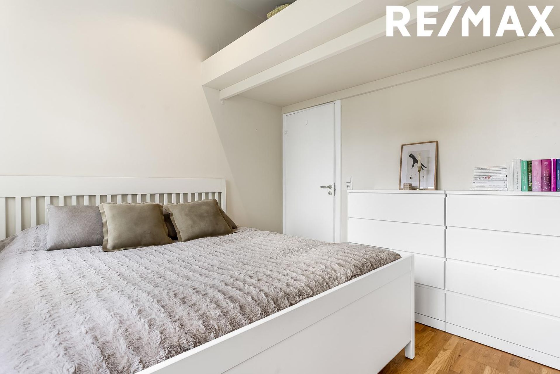 Á neðri hæð íbúðarinnar er stórt svefnherbergi, gott sjónvarpshol og stórt aukaherbergi sem má nýta sem geymslu, fataherbergi, skrifstofu eða svefnaðstöðu.