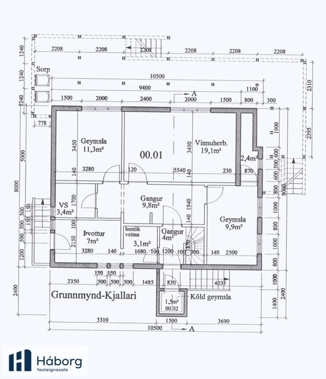 Í kjallara er einnig gott þvottahús með innréttingum í vinnuhæð og útgangi á austurhlið hússins.