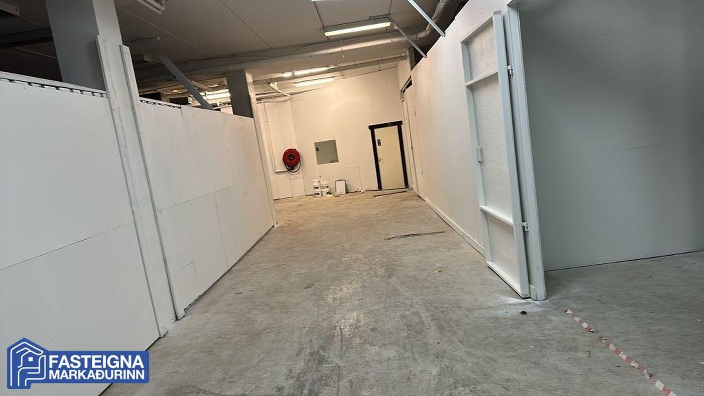 Um er að ræða 746,6 fermetra vörugeymslu sem hefur verið stúkuð niður að hluta til með léttum veggjum í nokkrar minni einingar og eina stóra, en auðvelt er að fjarlægja þá og nýta allt rýmið sem eina heild.