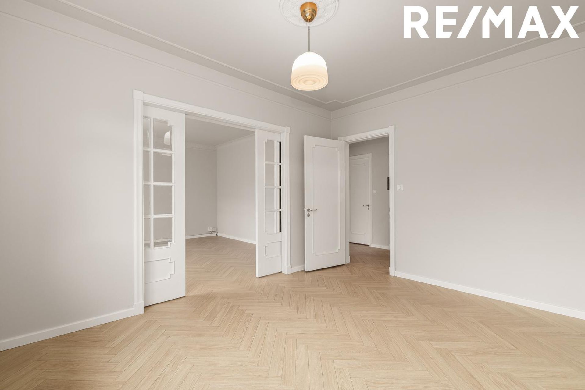 Gólfefni íbúðar utan eldhúss og baðherbergi er fallegt fiskibeina-harðparket.