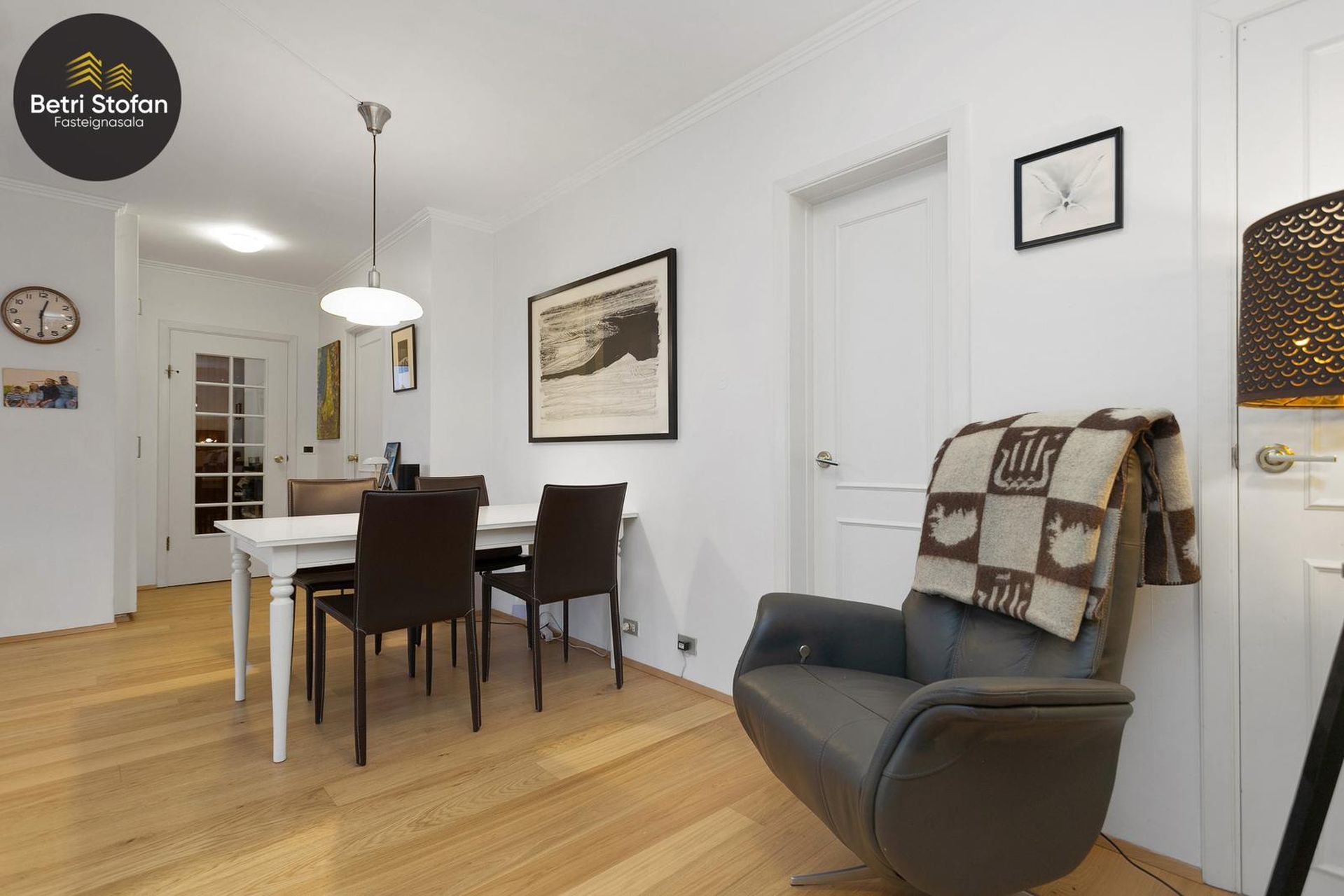 Stofa: Parketlögð með gluggum sem skapa góða birtu úr suðri