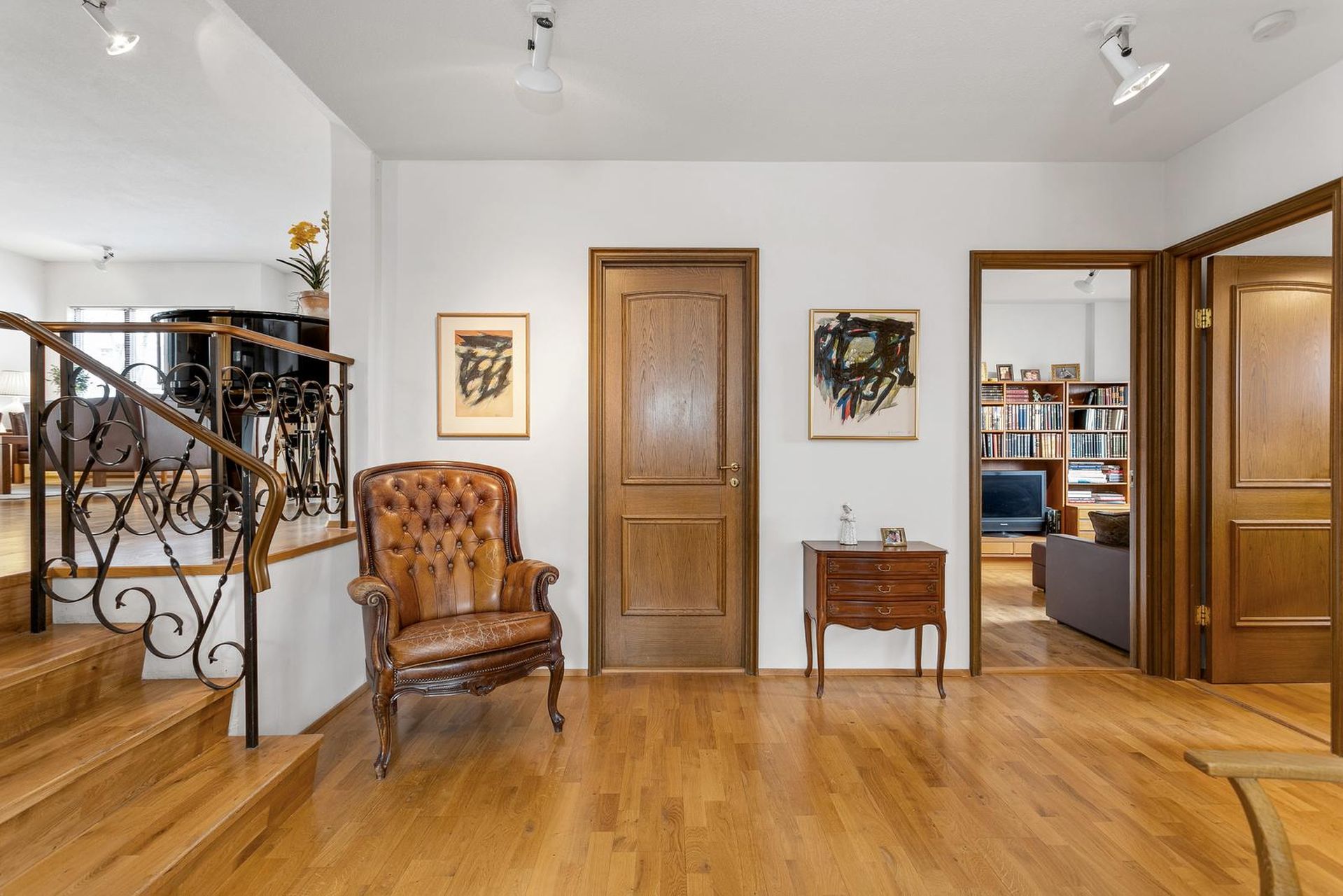 Úr miðrými er gengið upp nokkrar tröppur í fallega og bjarta stofu með aðgengi á góðar svalir til suð/vesturs, arinn er í stofu.