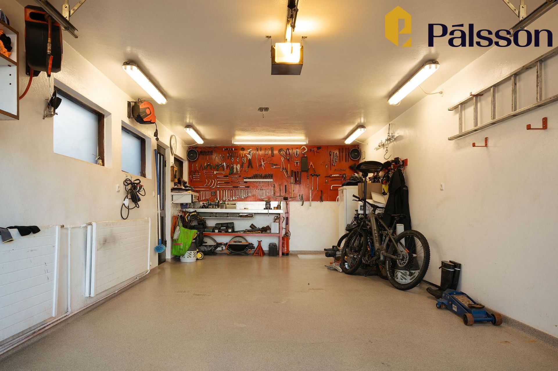 Bílskúrinn er með hita, rafmagni og vatni, auka rými undir bílskúr sem er ekki með í heildar fm eignarinnar.