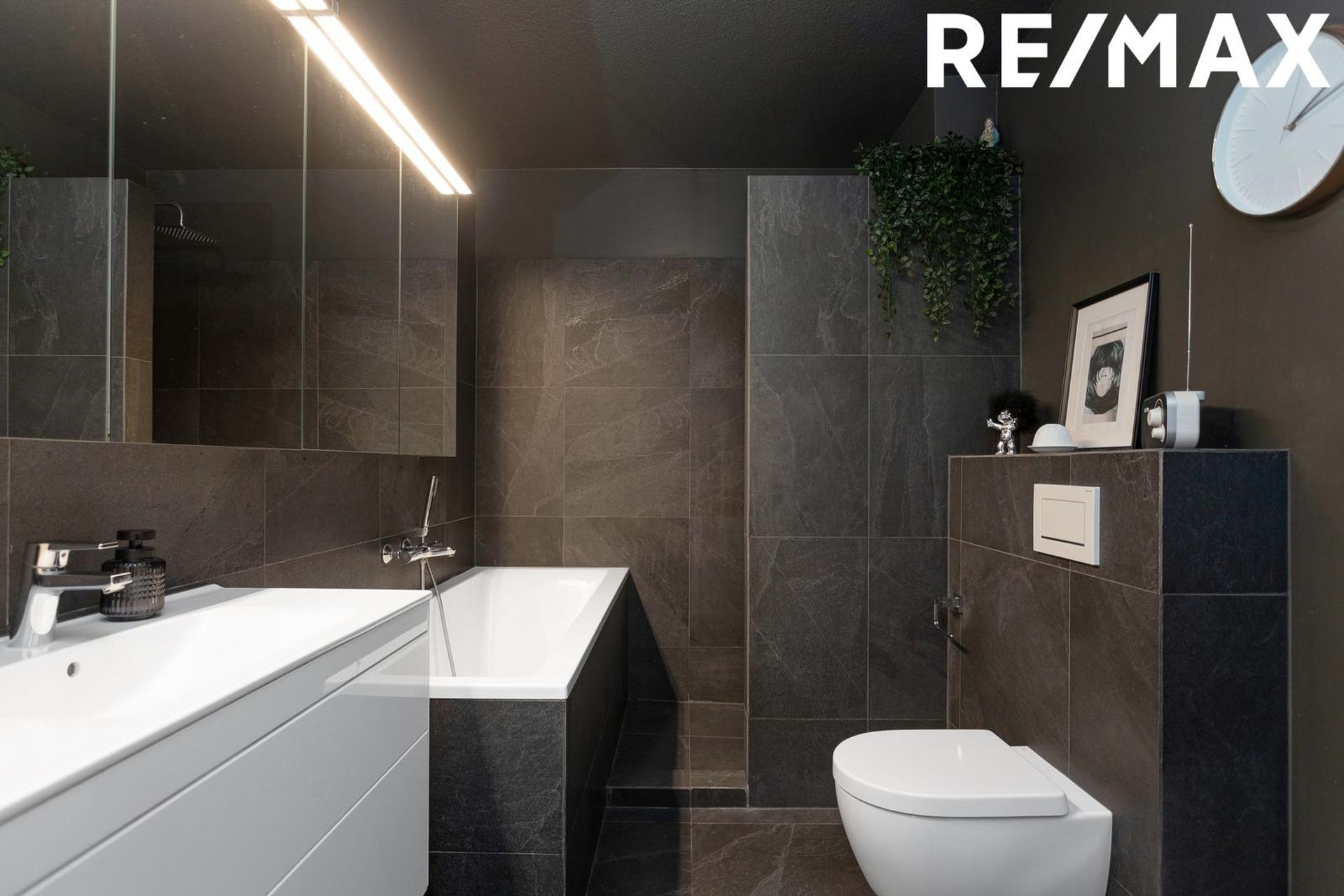 Baðherbergi: Flísar í hólf og gólf, walk-in sturta, baðkar, snyrtileg innrétting, tengi fyrir þvottavél & þurrkara.