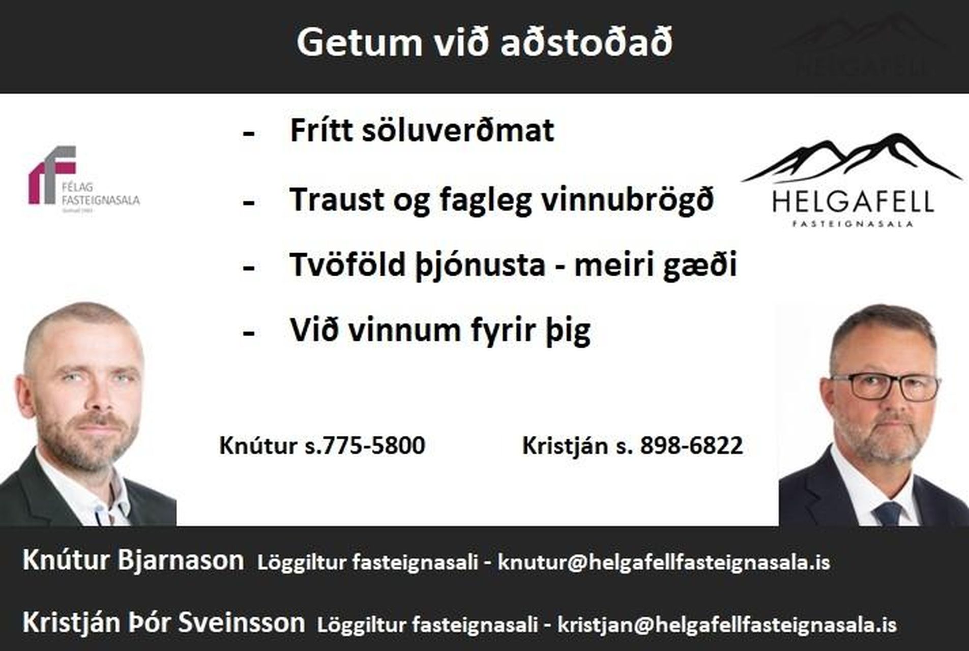 Kristján Þór Sveinsson, löggiltur fasteignasali, s: 898-6822 / kristjan@helgafellfasteignasala.is