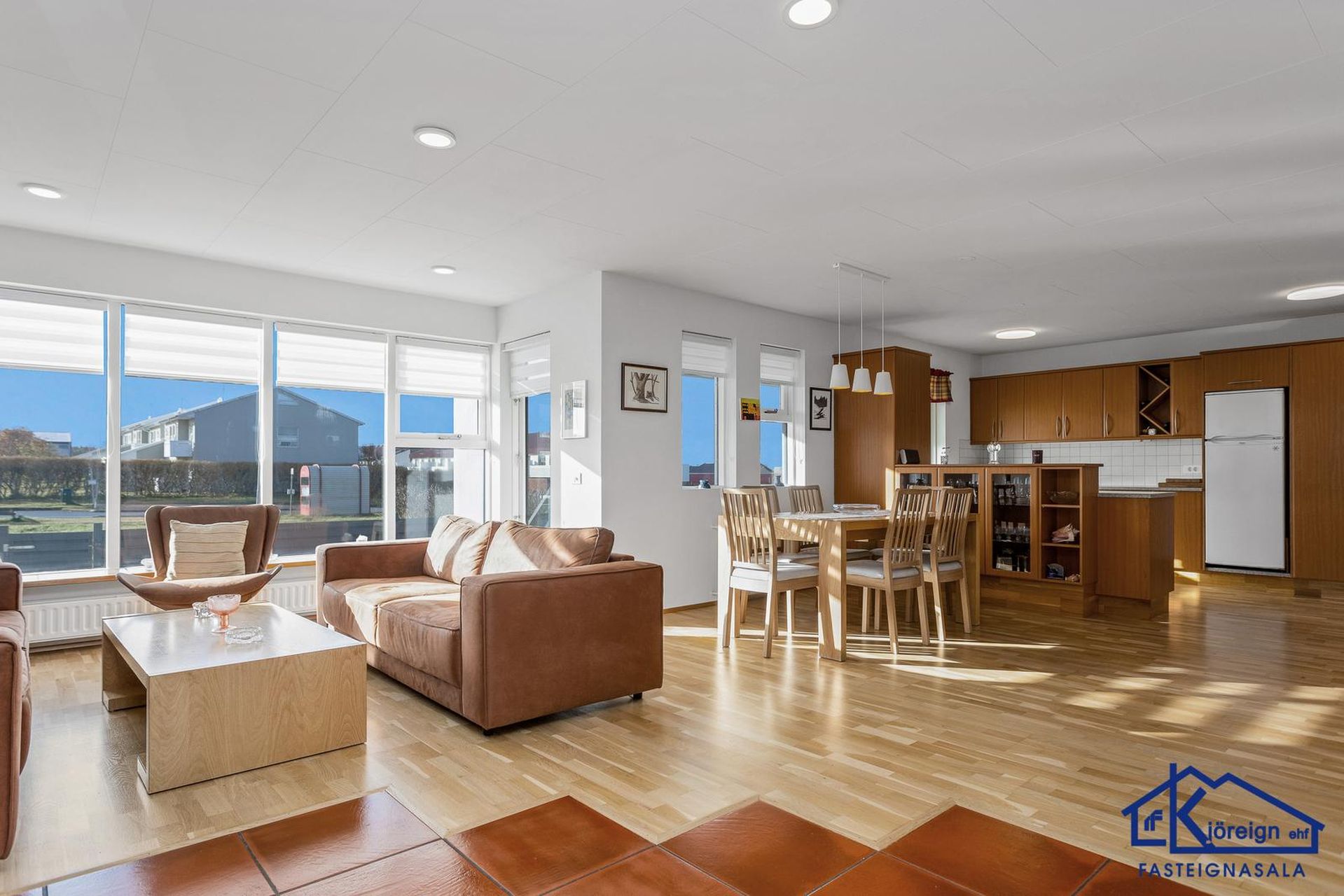 Kjöreign ehf., fasteignasala, Ármúla 21, Reykjavík, kynnir glæsilega rúmgóða og bjarta íbúð á neðri hæð í fjórbýlishúsi með stórum innbyggðum bílskúr á jarðhæð og stúdíóíbúð í kjallara við Fiskakvísl 9, Reykjavík. Birt heildarstærð er 183 fm. Íbúðin sjálf er 122,8 fm. stúdíóíbúðin er 29 fm og bílskúr 31,2 fm.
