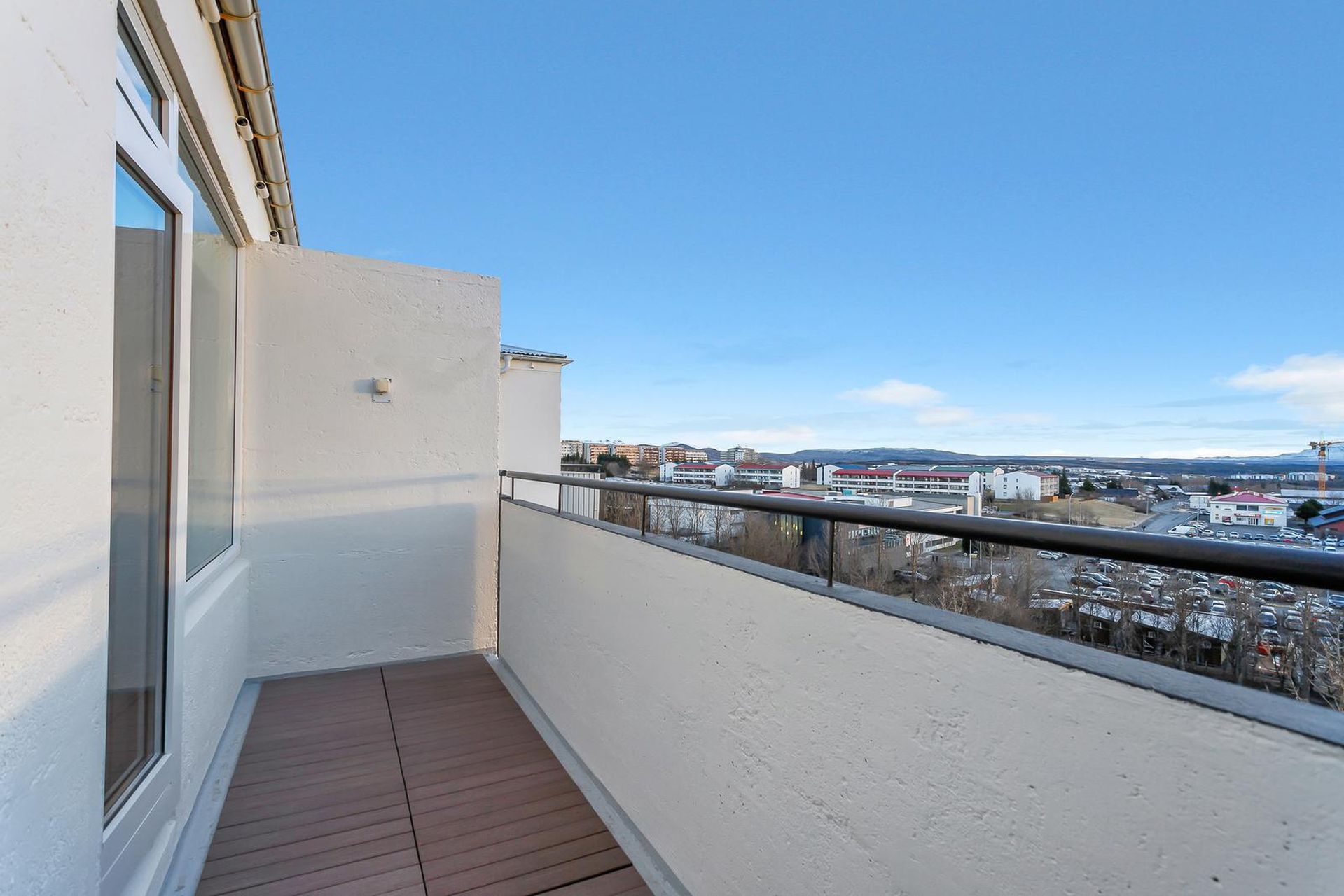Stofa/borðstofa eru björt og rúmgóð, parket á gólfi, útgengt er úr stofu út á austursvalir, mikið útsýni er til fjalla og yfir hluta hverfisins.