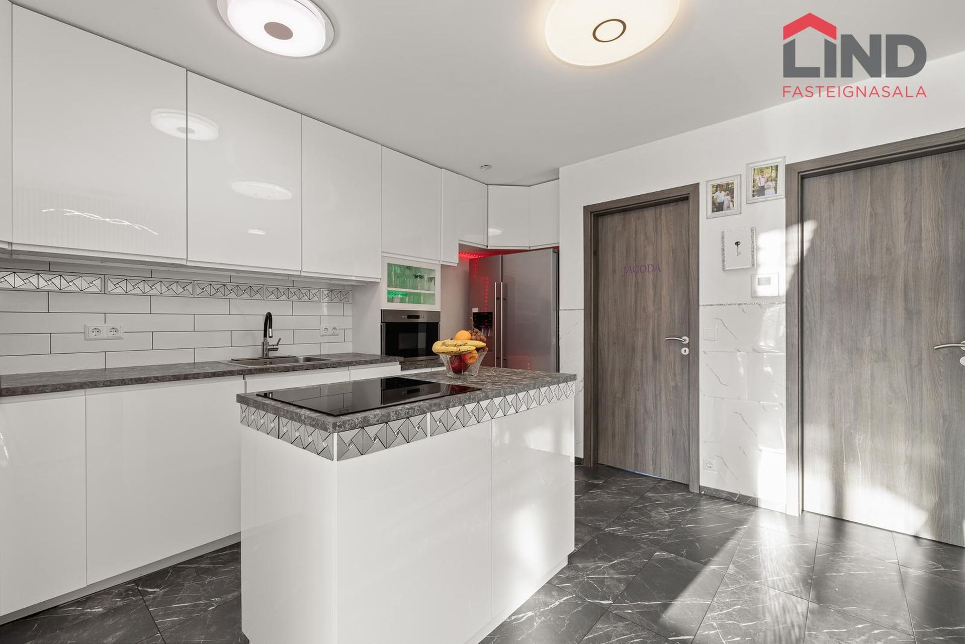 Albert i Lind – biuro nieruchomości – oferuje na sprzedaż odnowione mieszkanie o powierzchni 111,9 m², 5-pokojowe, położone na ostatnim piętrze, z garażem, przy Austurbergi 6.