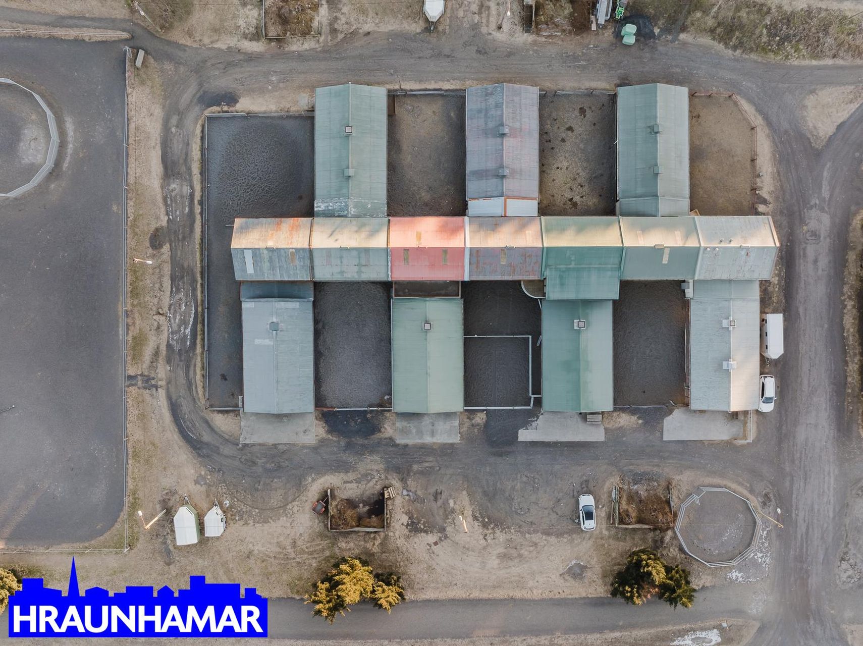 Eignarhluturinn er skýr og afmarkaður í húsinu. Um er að ræða 50% hlut í öllu húsinu, og er hann vinstrameginn í húsinu þegar komið er inn í það. Fimm 2ja hesta stíur og tvær ein hesta stíur, milligerði úr eik og ryðfríu efni, steyptir frontar með eikarhurðum/ ryðfrýtt efni. Rúmgóð sér hlaða, sér hnakka/reyðtygja geymsla, rúmgóð kaffistofa á efri hæð auk snyrting, gengið út á rúmgóðar s-v svalir frá kaffistofu.