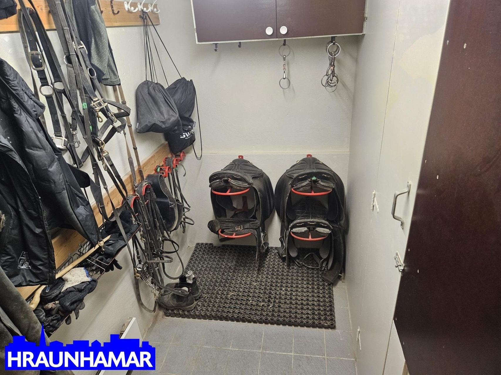 Húsið skiptist m.a. þannig: Hesthús með þremur löglegum nýjum eins hesta stíum, góð hlaða og rúmgóð hnakka og reyðtygja geymsla, geymslurými/geymsluskápur, snotur kaffstofa á millilofti með birtu/glugga niður í hesthúsið.