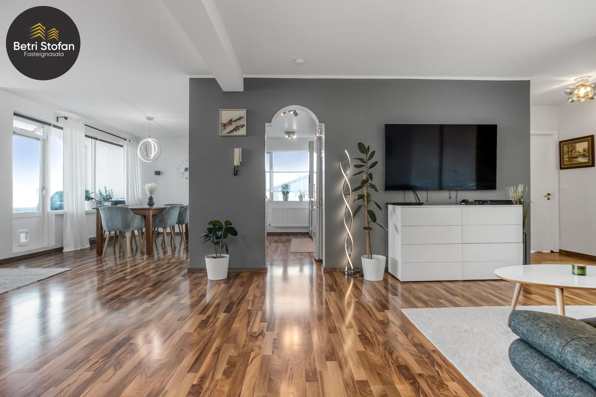 Stofa / sjónvarpshol / borðstofa: Mynda opið, stórt og bjart alrými, frábært útsýni og útgengt á svalir (hægt að stúka af 4. svefnherbergið í borðstofu).