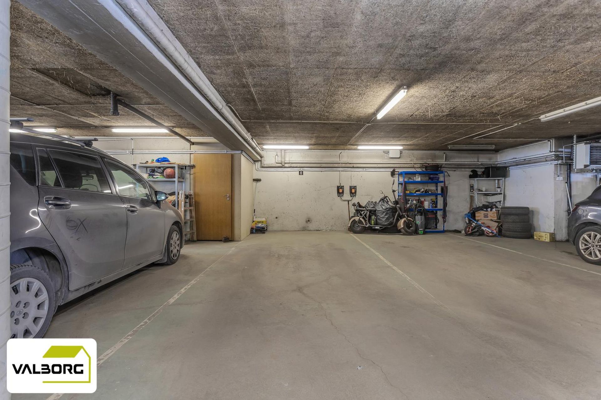 2025: Sett var upp fyrir rafmagnsbíla í bílskýli um mitt árið 2025. Fólk setur upp sjálft eða leigir stöð.