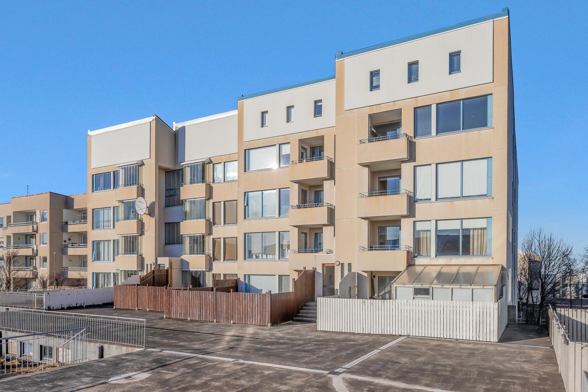 Í kjallara er sér geymsla og sameiginleg hjóla og vagna geymsla.