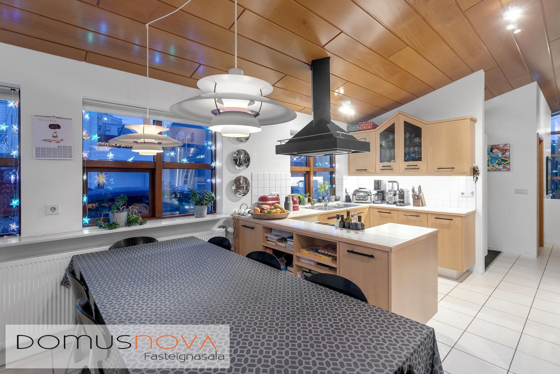 íbúðin er á 2 hæðum, 172,7fm, mjög hátt til lofts í stofu og borðstofu.