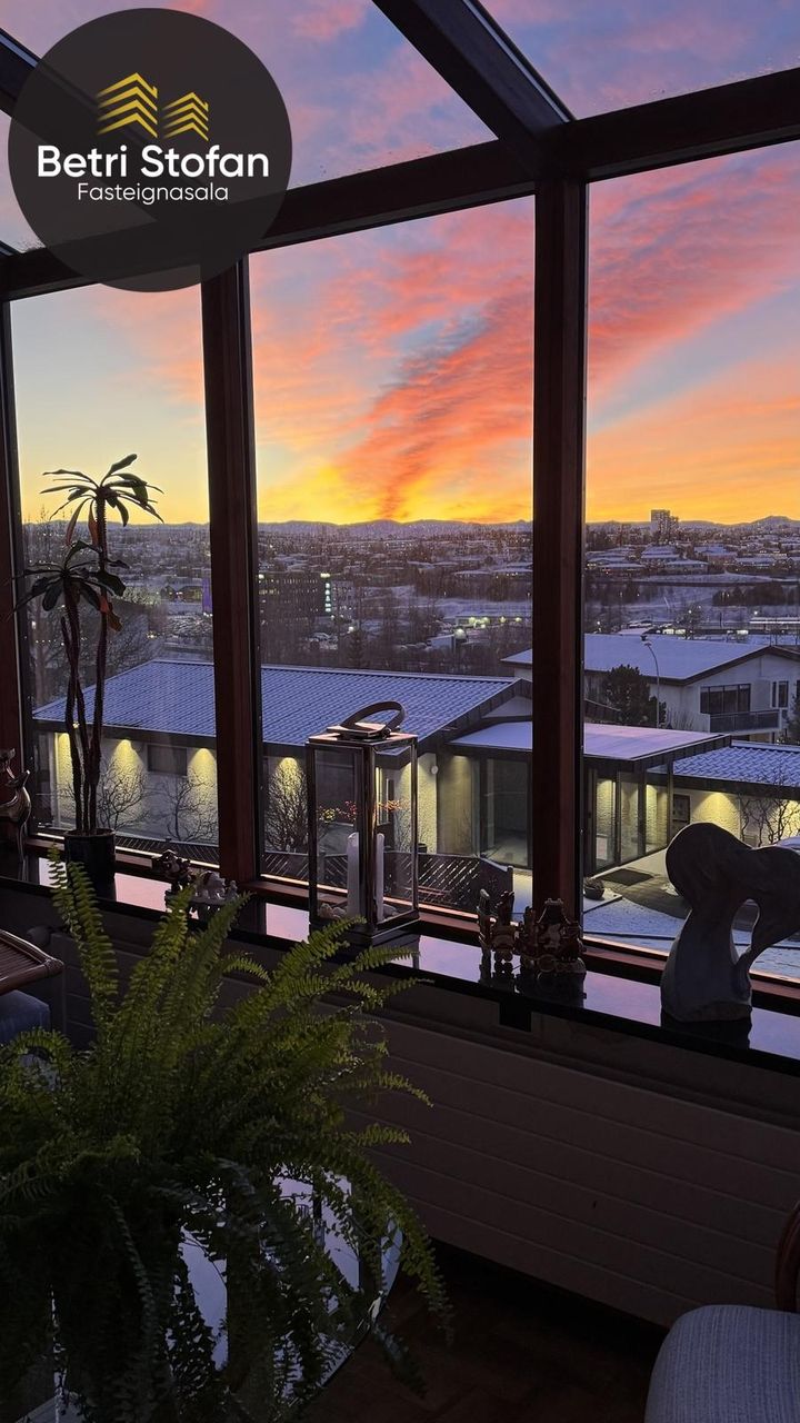 Sólstofa: parketlögð með útgang út á stórar suður svalir.