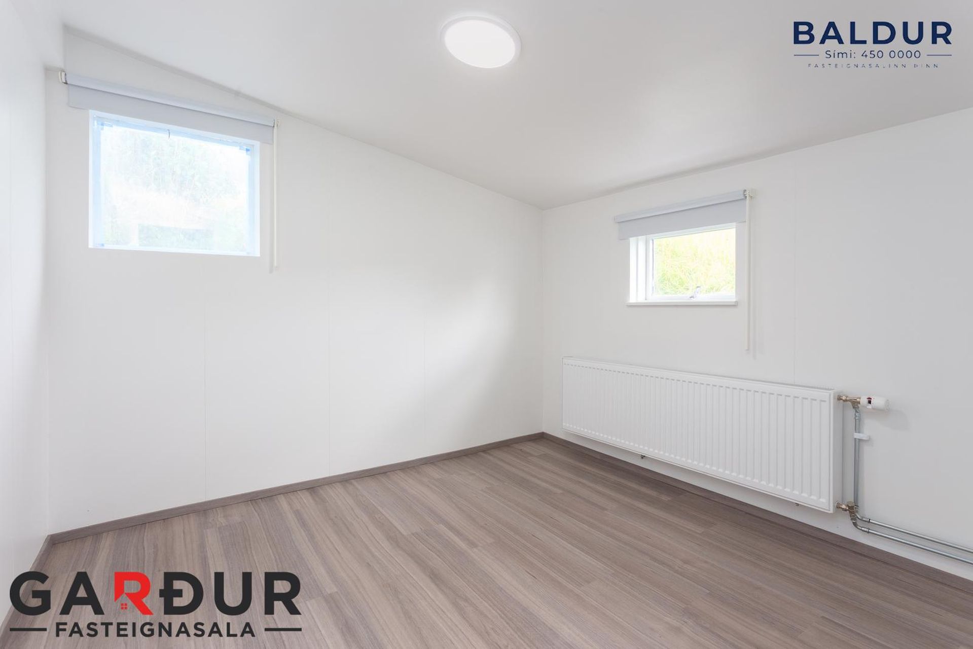 Hjónaherbergi: Nýmálað með nýju gólfefni og hurð frá Birgisson.