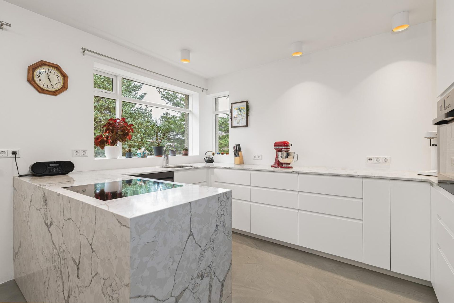 Eldhús var endurnýjað 2023-2024. Gólfið var flotað og lagt microcement yfir. Nýjar vatnslagnir lagðar í eldhús og nýjar raflagnir að hluta. Heimilistækin eru nýleg. Ljós frá Rafkaup og falleg kvars borðplata frá Steinprýði. Niðurfellt helluborð og undirlímdur vaskur.