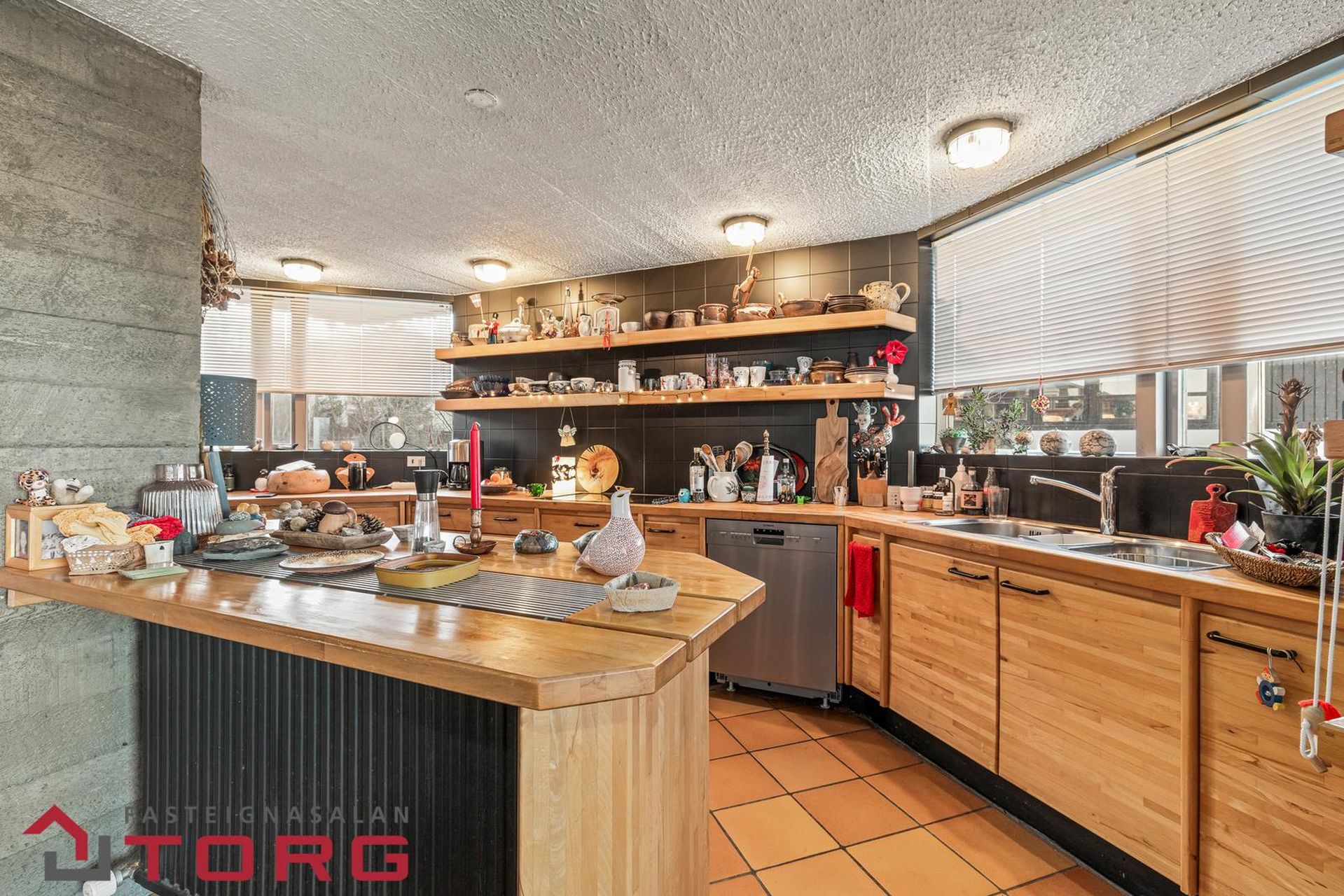 Nánari lýsing: Gengið er inn í húsið á miðhæð og inn í anddyri með innbyggðum fataskápum fyrir innan. Frá anddyri er innangengt inn í þvottahús og bílskúr með háalofti. Komið er síðan inn í bjart og opið alrými með fallegu útsýni. Í alrýminu er arinstofa, setustofa og borðstofa. Eldhúsinnréttingin er úr ljósum við og flæðir eldhúsið að hluta til inn í eldhúskrók og stofuna. Útgengt er út á rúmgóðar svalir með frábæru útsýni yfir Garðabæ, út á sjó og alla leið á Snæfellsnesið. Lítið gestasalernir er á miðhæð hússins ásam búri við eldhúsið. Á efstu hæð er baðherbergi með sturtu, salerni og ljósri innréttingu með handlaug. Á efstu hæðinni eru einnig þrjú svefnherbergi. Á neðstu hæð hússins er innangengt inn í sér íbúð með baðherbergi, þvottahúsi, tvö svefnherbergi, eldhúsi og stofu. Baðherbergið er mjög rúmgott með sérsmíðuðu baðkari/sturtu, salerni og ljósri innréttingu með handlaug. Sér inngangur er inn í þessa íbúð þannig auðvelt er að hafa hana sem sér útleigueiningu eða part af húsinu. Mikið er um fallega sjónsteypu í húsinu og er húsið sérlega skemmtilega hannað með óhefðbundinni lögun.