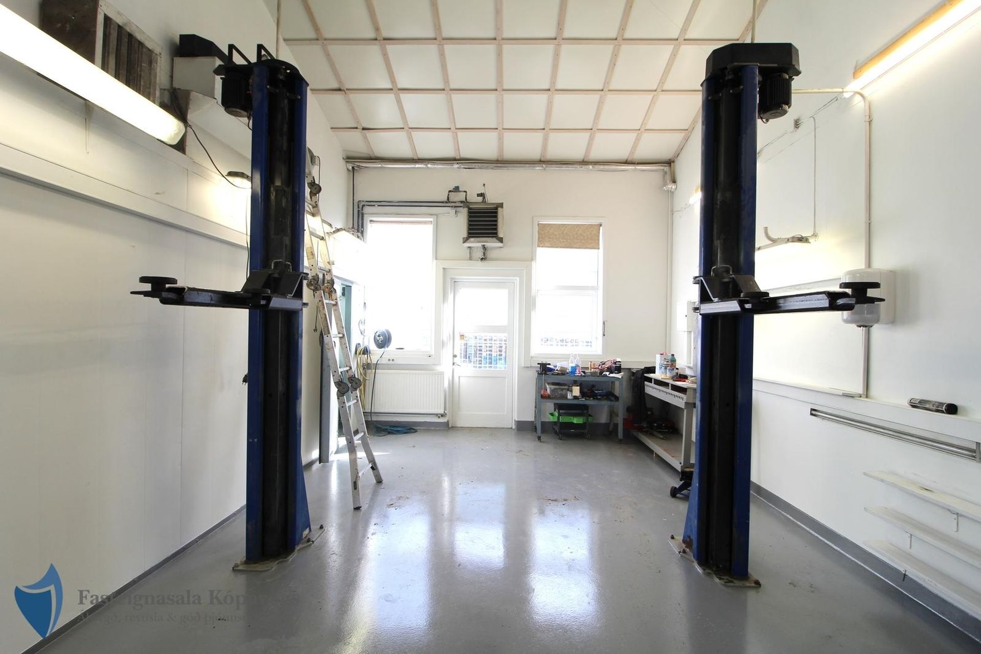 Atvinnuhúsnæðið er tilbúið bíla- og sprautuverkstæði. Bílalyfta og sprautuklefi er á 1.hæð og eldhús, wc og geymslur eru á 2.hæð.