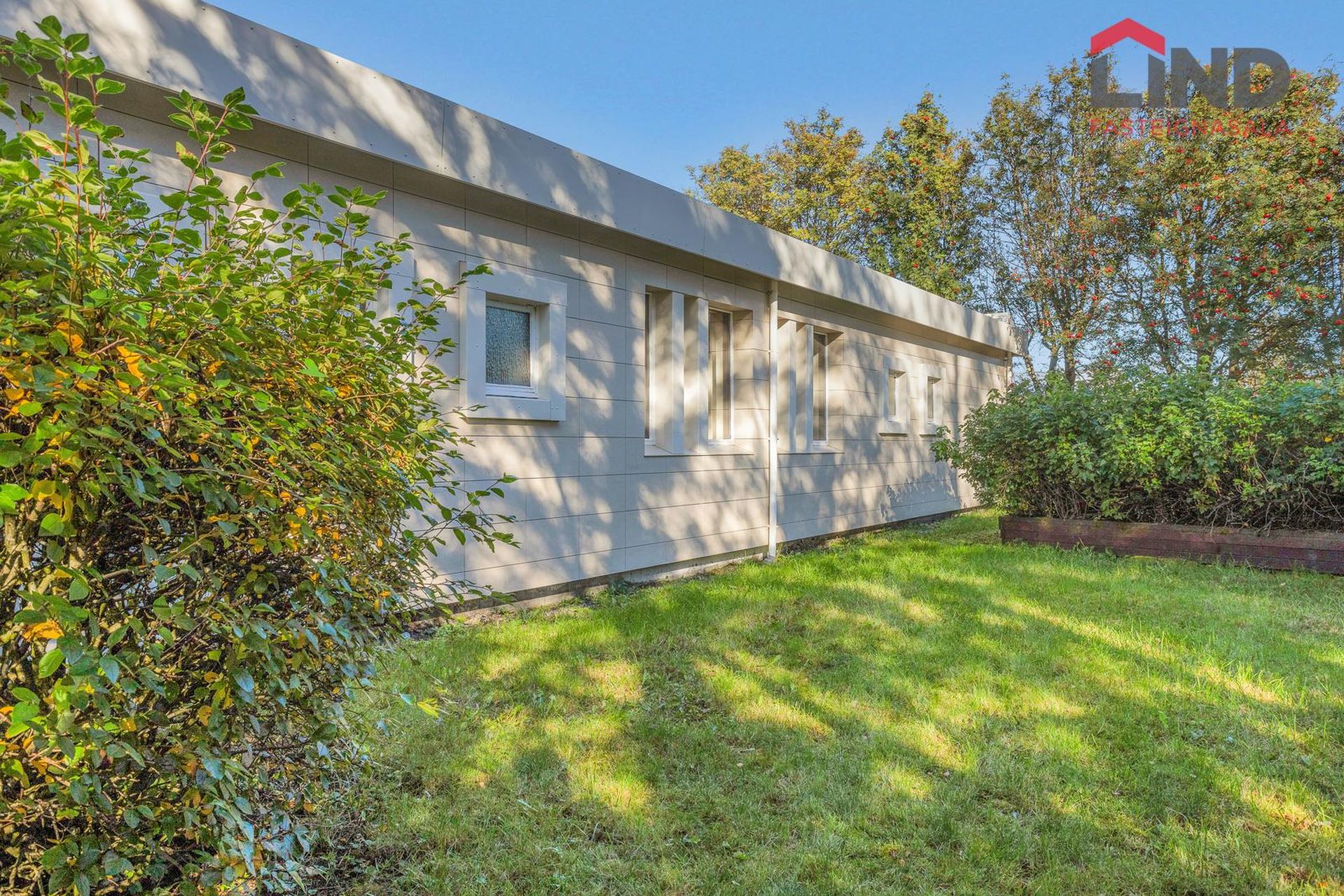 Lind fasteignasala / Heimir Hallgrímsson lögg. fasteignasali kynnir fallegt og vel skipulagt 206,9 fermetra arkitektateiknað og tímalaust einbýlishús á einni hæð, þar af 50,4 fermetra bílskúr, við Arnartanga 23 í Mosfellsbæ. Húsið frábærlega staðsett á stórri 870 fermetra gróinni lóð innst í rólegri og barnvænni götu við Arnartanga. Á árunum 2007-2008 var húsið einangrað að utan og klætt með fallegum flísum. Sama ár var þakið endurnýjað. Lóðin, sem er með virkilega fallegum trjágróðri, var teiknuð upp af landslagsarkitekt með verönd og sundlaug til suðvesturs. Rúmgóð hellulögð stétt að húsi og fyrir framan bílskúr.