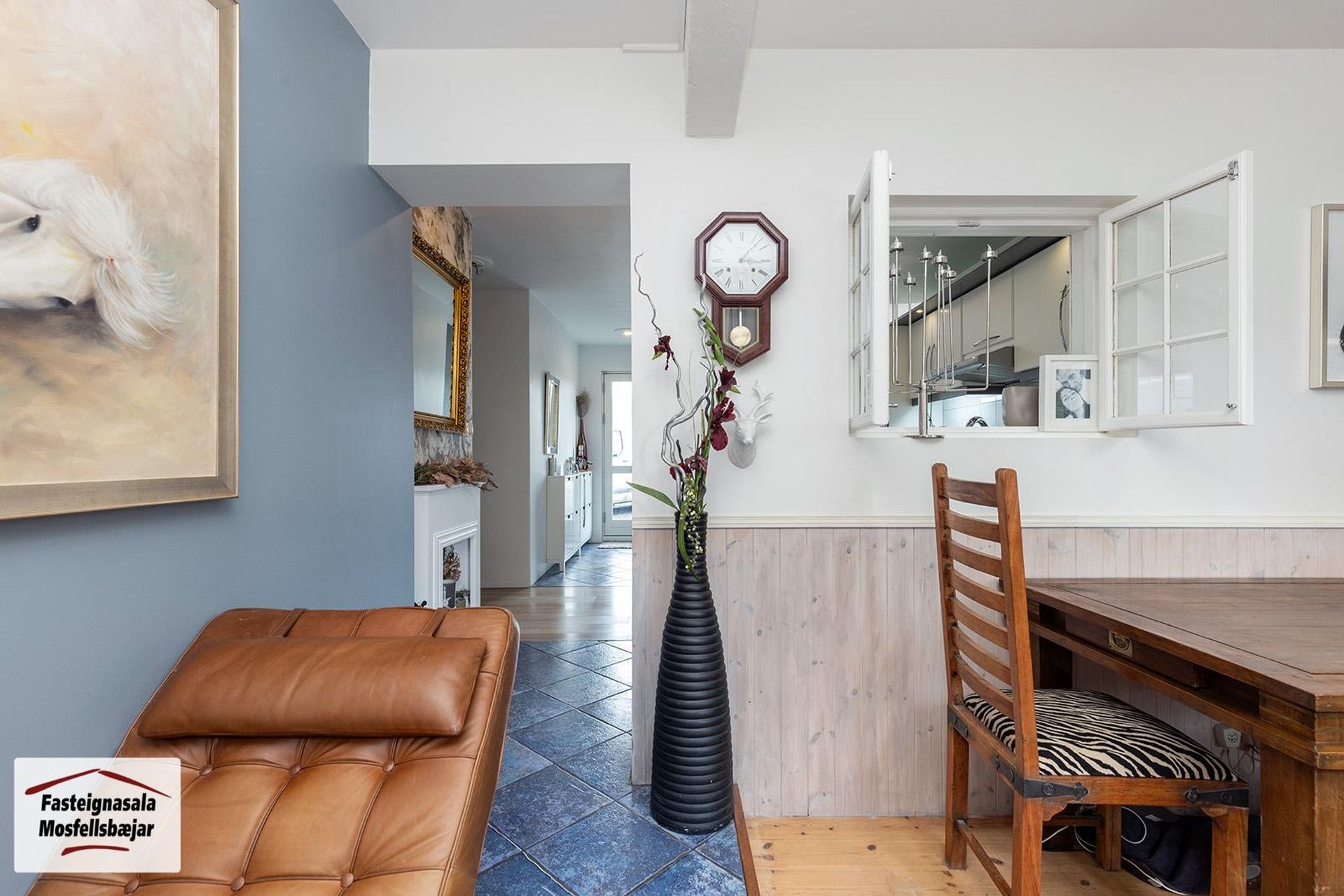 Forstofa er með flísum á gólfi.