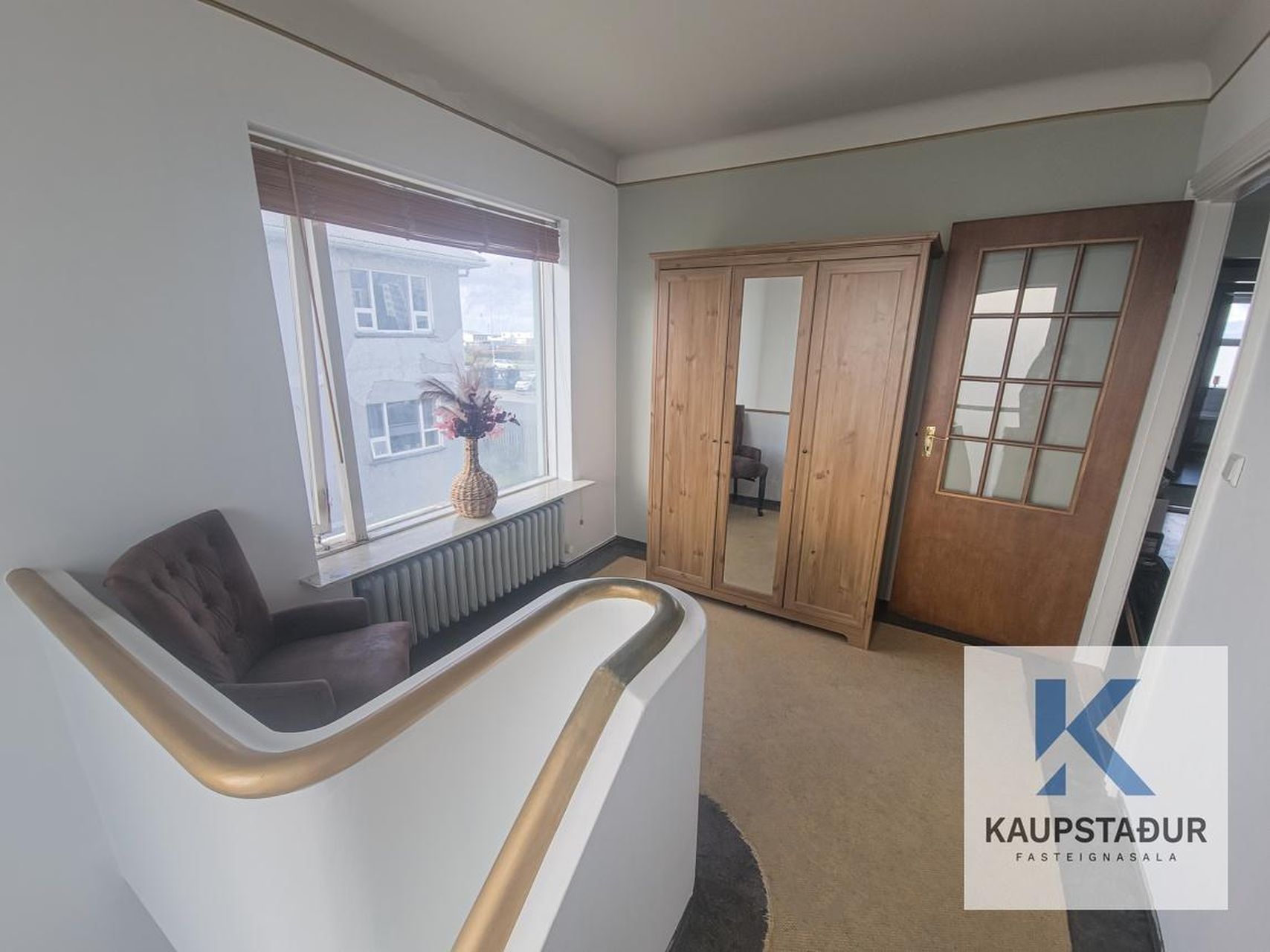 Stigaskör, dúkur á gólfi, fataskápur. Hurð skilur að önnur rými íbúðarinnar. Anddyri og stigaskör er ekki inni í fermetratölu íbúðar en telst þó sérafnotaréttur hennar.