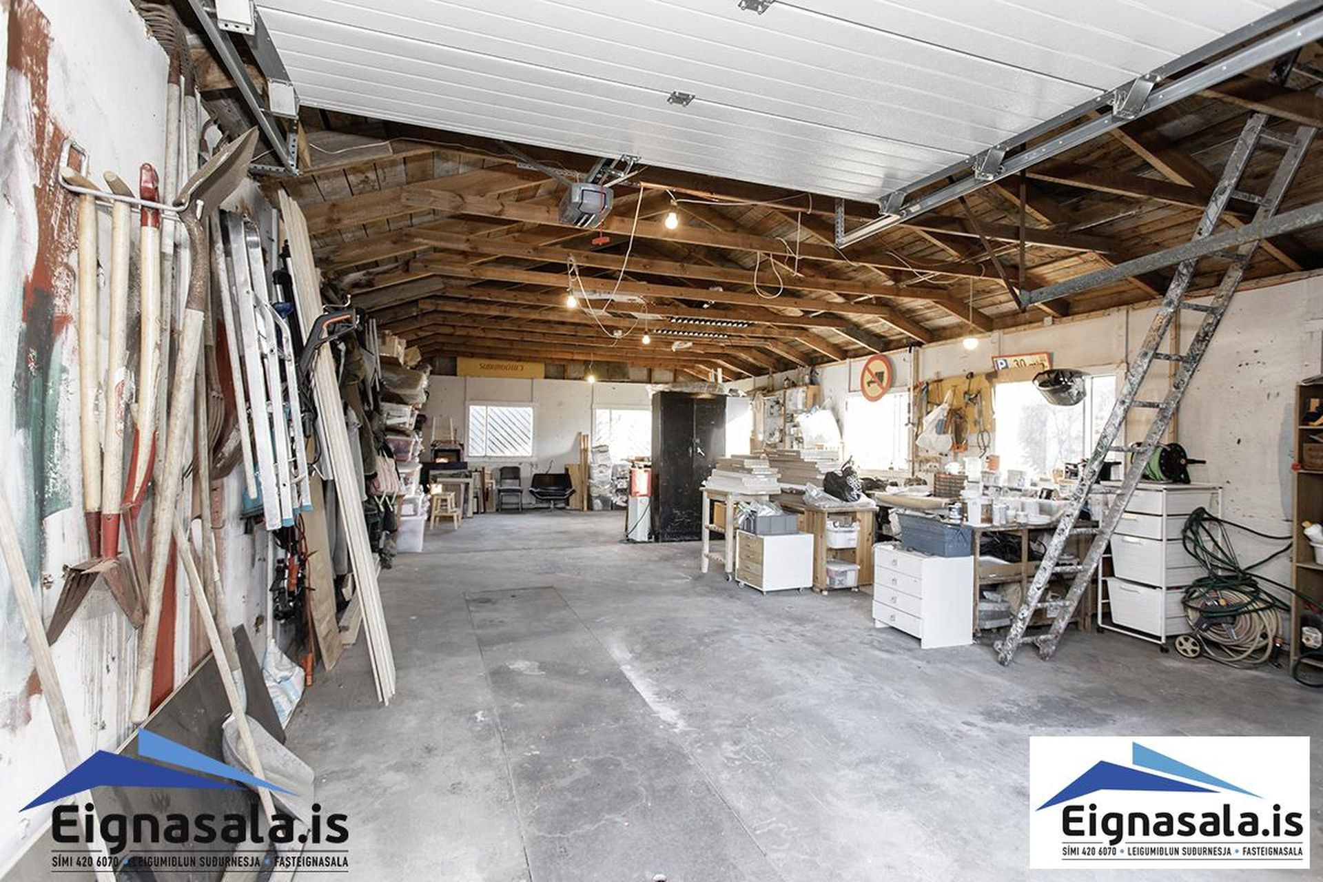 Bílskúr: Mjög rúmgóður tvöfaldur bílskúr með góðri lofthæð.