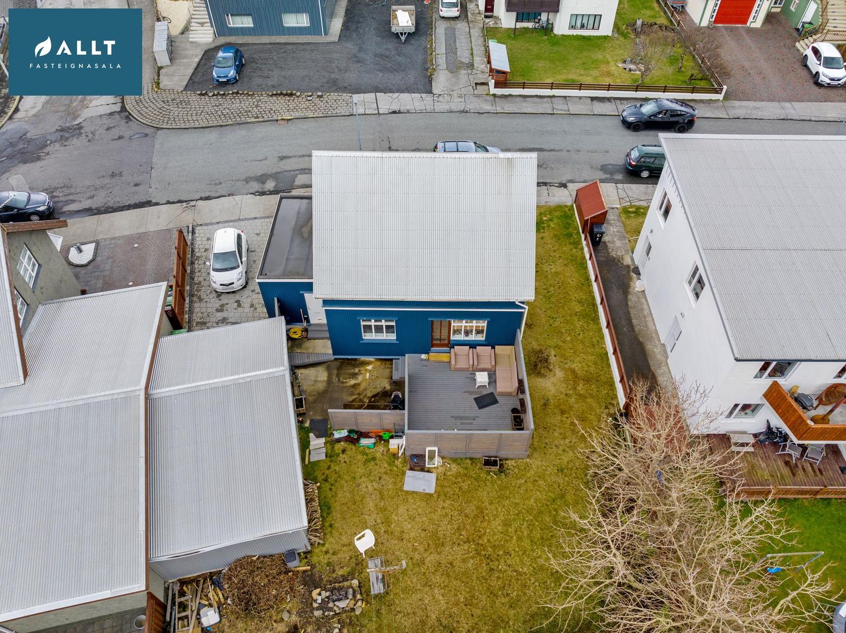 Hellulagt bílaplan, lokaður bakgarður með sólpalli. Virkilega snyrtilegt umhverfi.