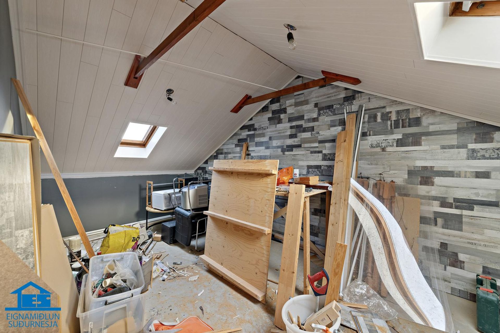 Rúmgott og nýtanlegt háreist ris er á efri hæð, þar sem eru opnanlegir þakgluggar.