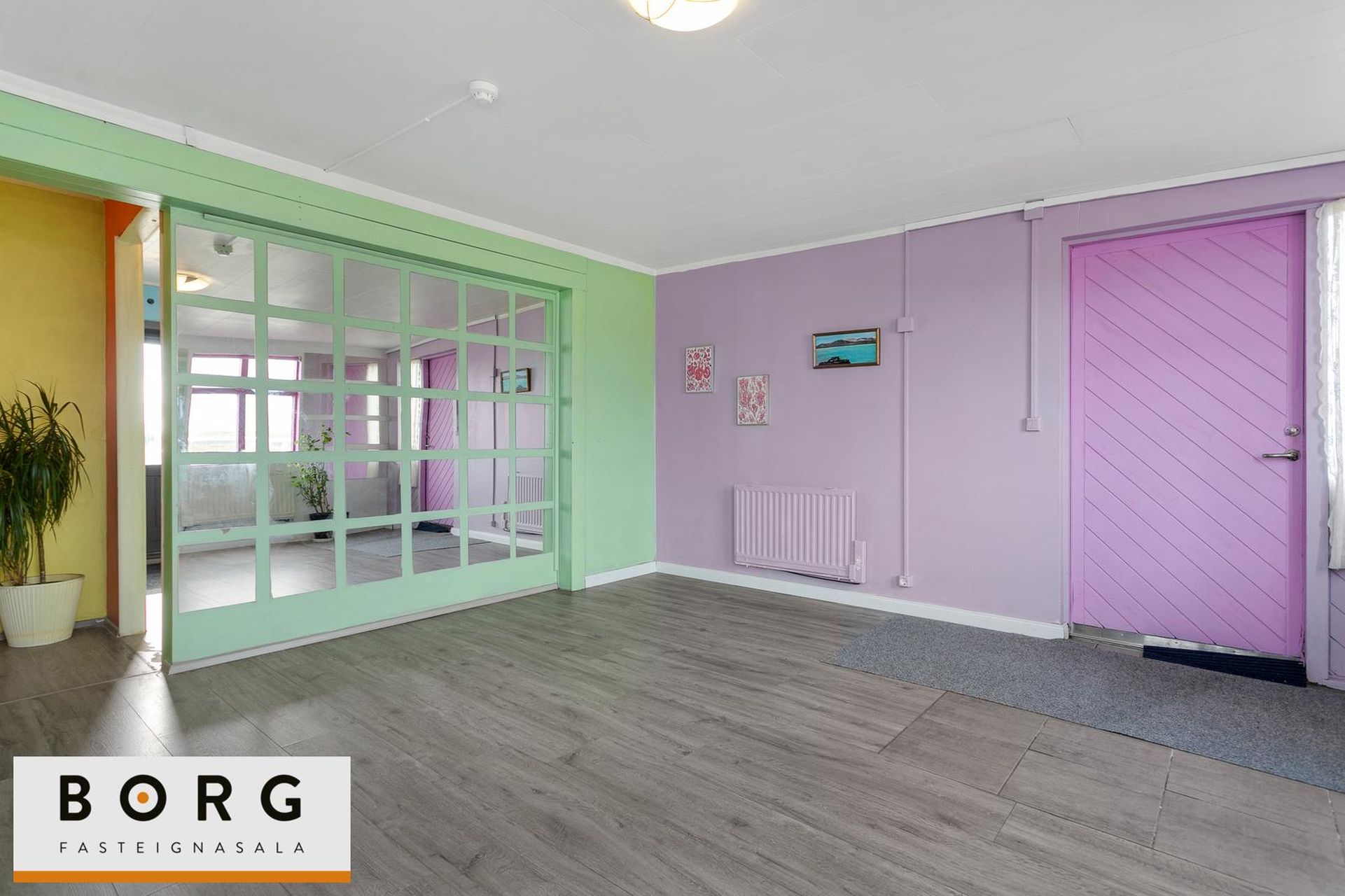 Gangur: stór gangur sem tengir saman íbúðirnar tvær sem áður voru í húsinu. Harðparketi á gólfi, góðir skápar og hurð út á verönd.