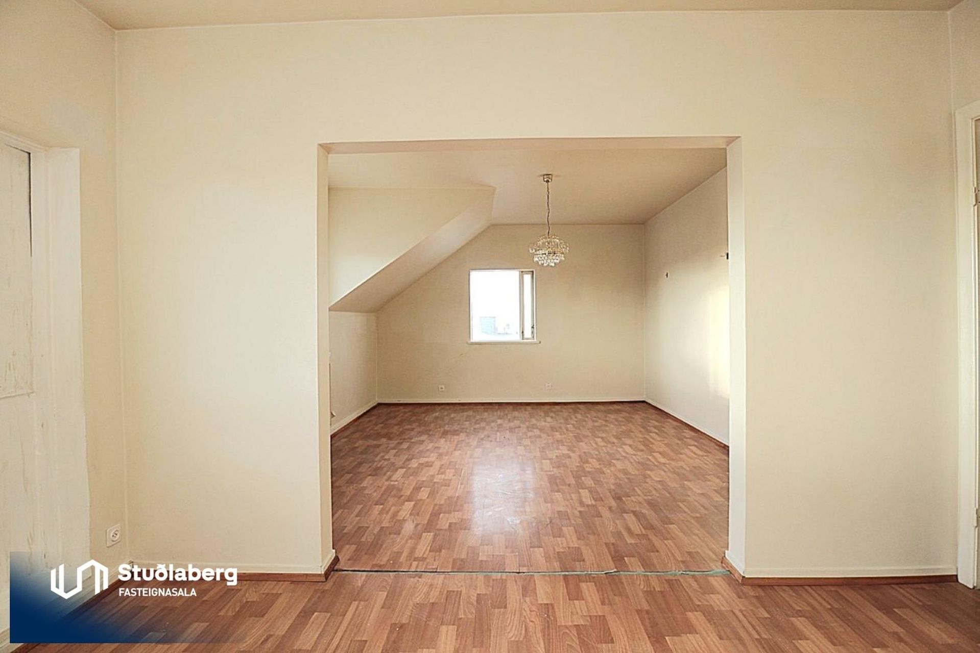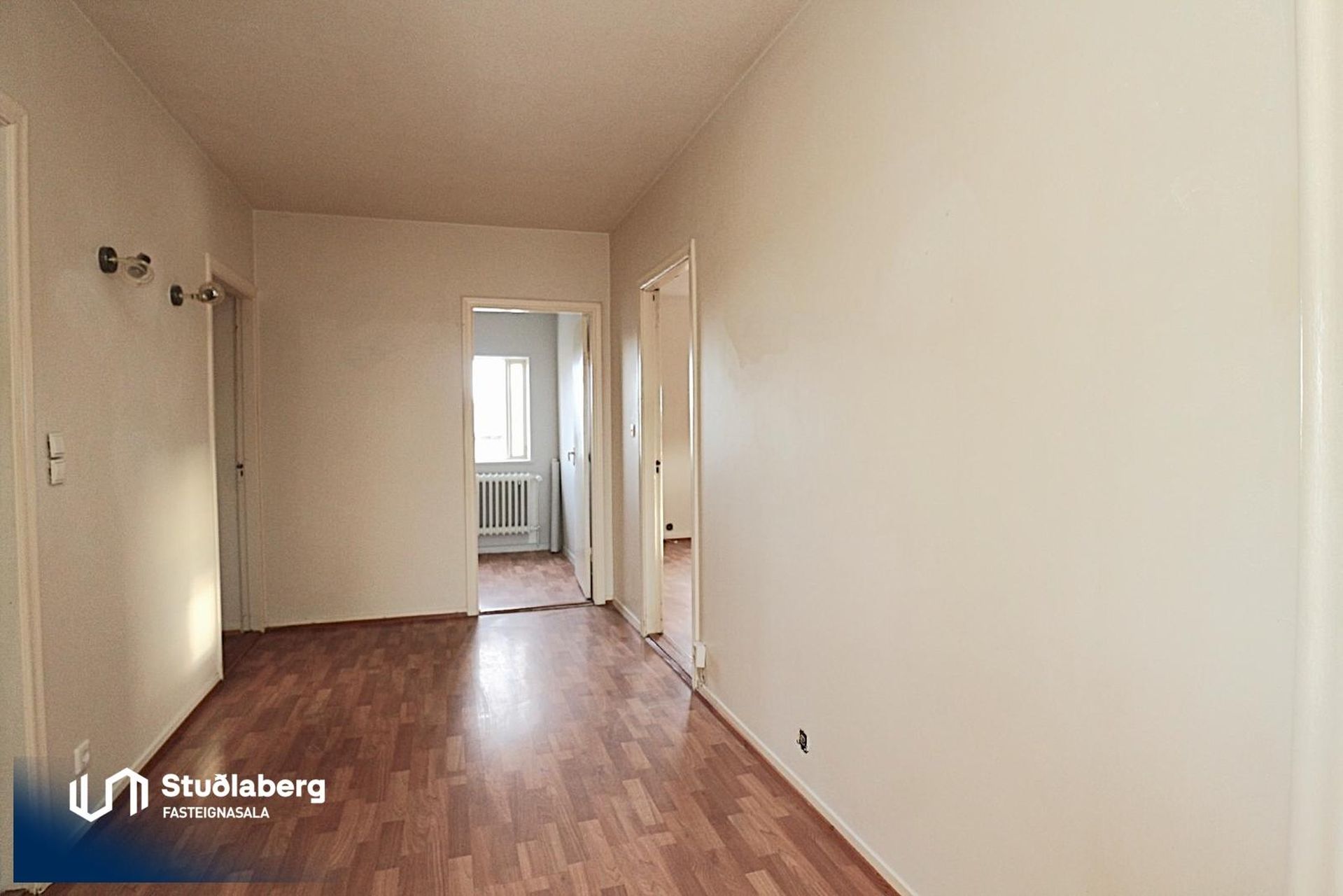 Eignin hefur sérinngang og skiptist í forstofu, stigagang og stigapall, eldhús, baðherbergi, stóra stofu og þrjú svefnherbergi.