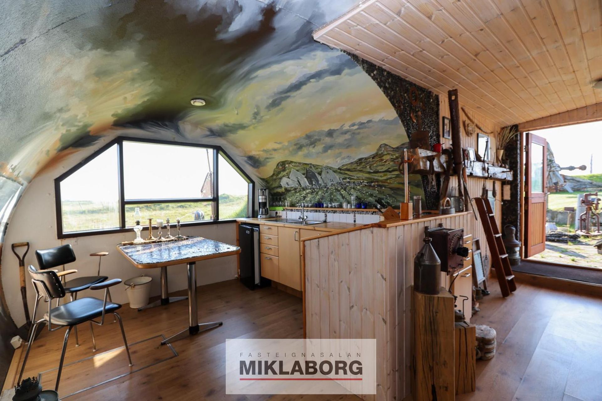 Mikið er af skrautlegum listaverkum úr stáli sem fengið hafa að veðrast og setja mikin svip á svæðið. Þar er einnig t.a.m. gamall bátur sem hugsað hefur verið vel um en hann er þó aðallega ætlaður til skrauts og ekki sjófær. Einnig er nokkuð af rekavið á landi sem haganlega hefur verið komið fyrir á ýmsum stöðum þannig að prýði er af. Ekki er hægt að lýsa öllum kostum húsa og svæðis en myndirnar tala sínu máli.
