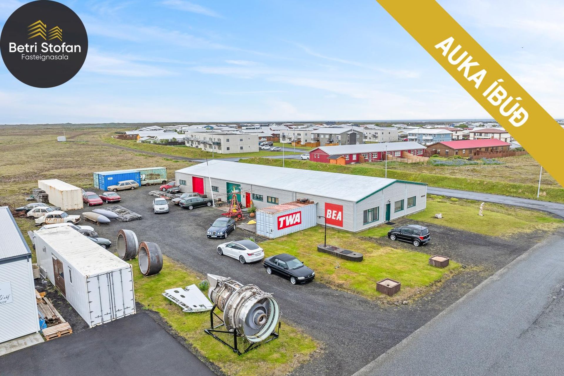 Betri Stofan Fasteignasala og Hreiðar Levý lögg. fasteignasali kynna 470,4fm iðnaðarhúsnæði sem stendur á 2423fm leigulóð að Iðngörðum 2, 250 Garður, nánar tiltekið eign merkt 01-01, fastanúmer 209-5570 ásamt öllu því sem eigninni fylgir, þar með talið tilheyrandi lóðar og sameignarréttindi. Það eru tvö til þrjú bil í húseigninni, léttir milliveggir milli bilanna. Iðnaðarhurðir á bilunum tveimur. Það er einangrun í loftum og hiti í öllum bilunum. Eignin er í ágætu ástandi utan sem innan, en gluggar eru upprunalegir. Í endabilinu sem er 2ja herbergja íbúð. Rafmagnsinntak og taflan er í endabilinu þar sem íbúðin er. Góð aðkoma á stórt og opið bílaplan. Eign sem haldið hefur verið við á góðum stað í Garðinum.