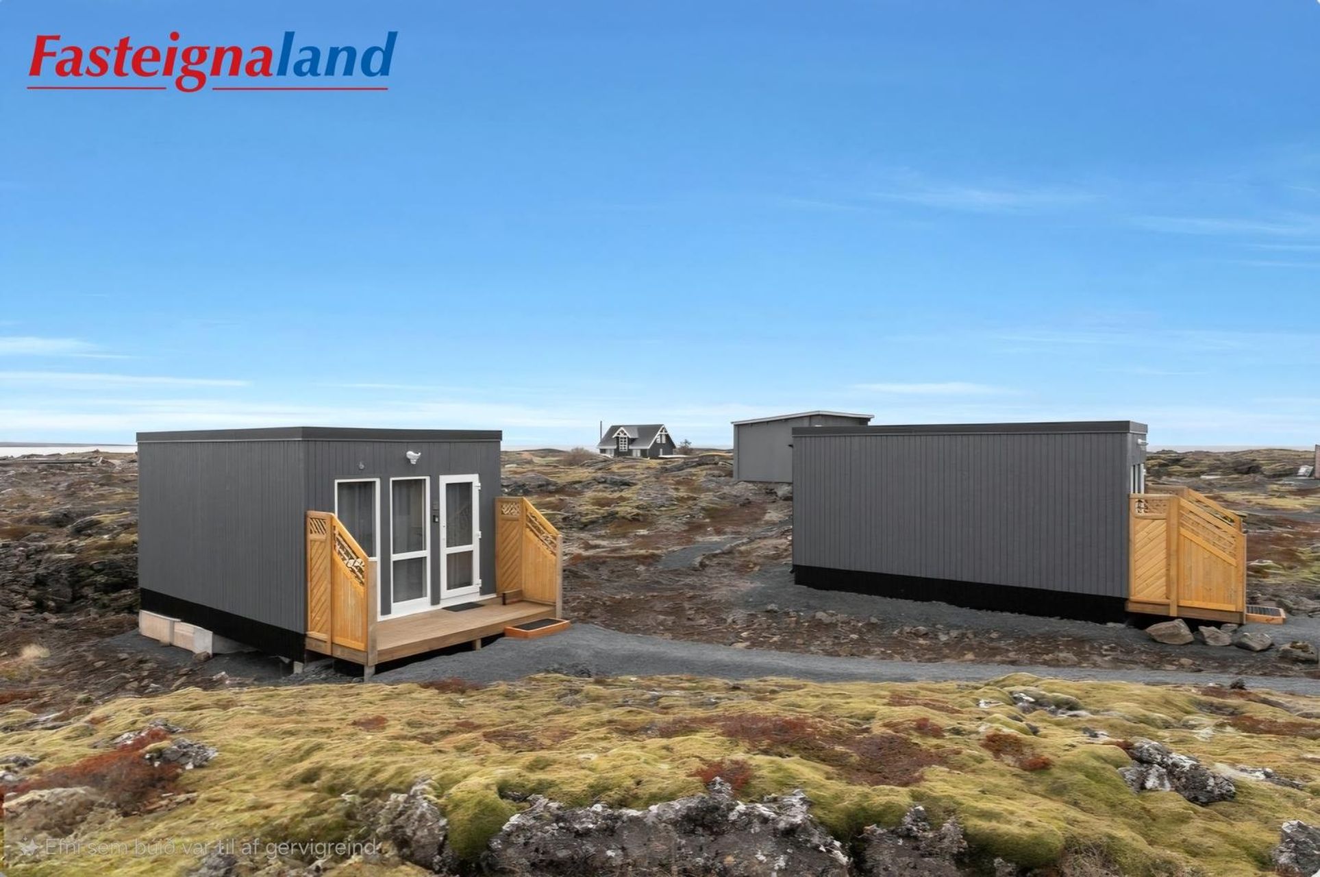 Eignirnar skiptast í bjart opið rými með svefnaðstöðu, eldhús og salerni með sturtu. Stórt bílaplan er fyrir framan. Húsin eru skráð á öllum helstu bókunarsíðum og fær góð meðmæli viðskiptavina, möguleiki kaupanda er að yfirtaka það og fylgi þannig kaupum.