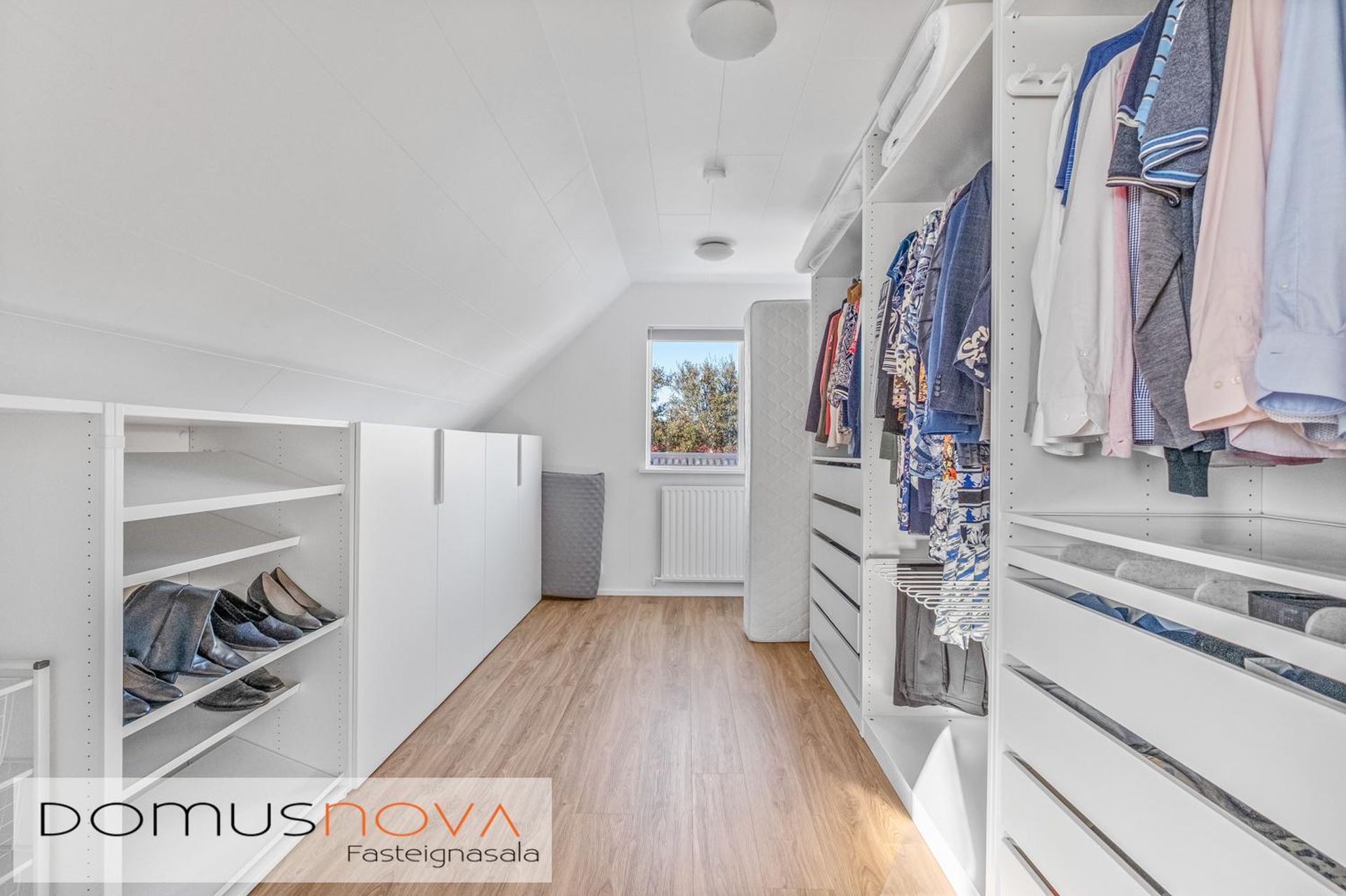 Fjögur svefnherbergi (eitt þeirra er notað sem fataherbergi í dag en mjög lítið mál að breyta aftur í svefnherbergi).