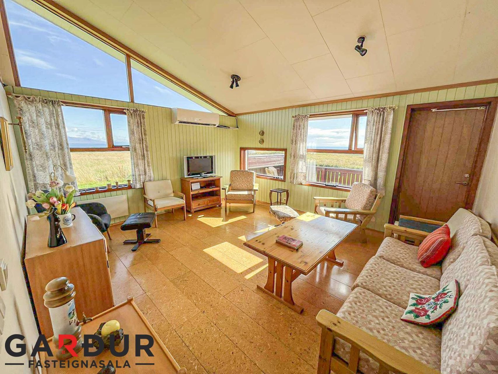 Stofa: Stofan er mjög björt og með fallegu útsýni.