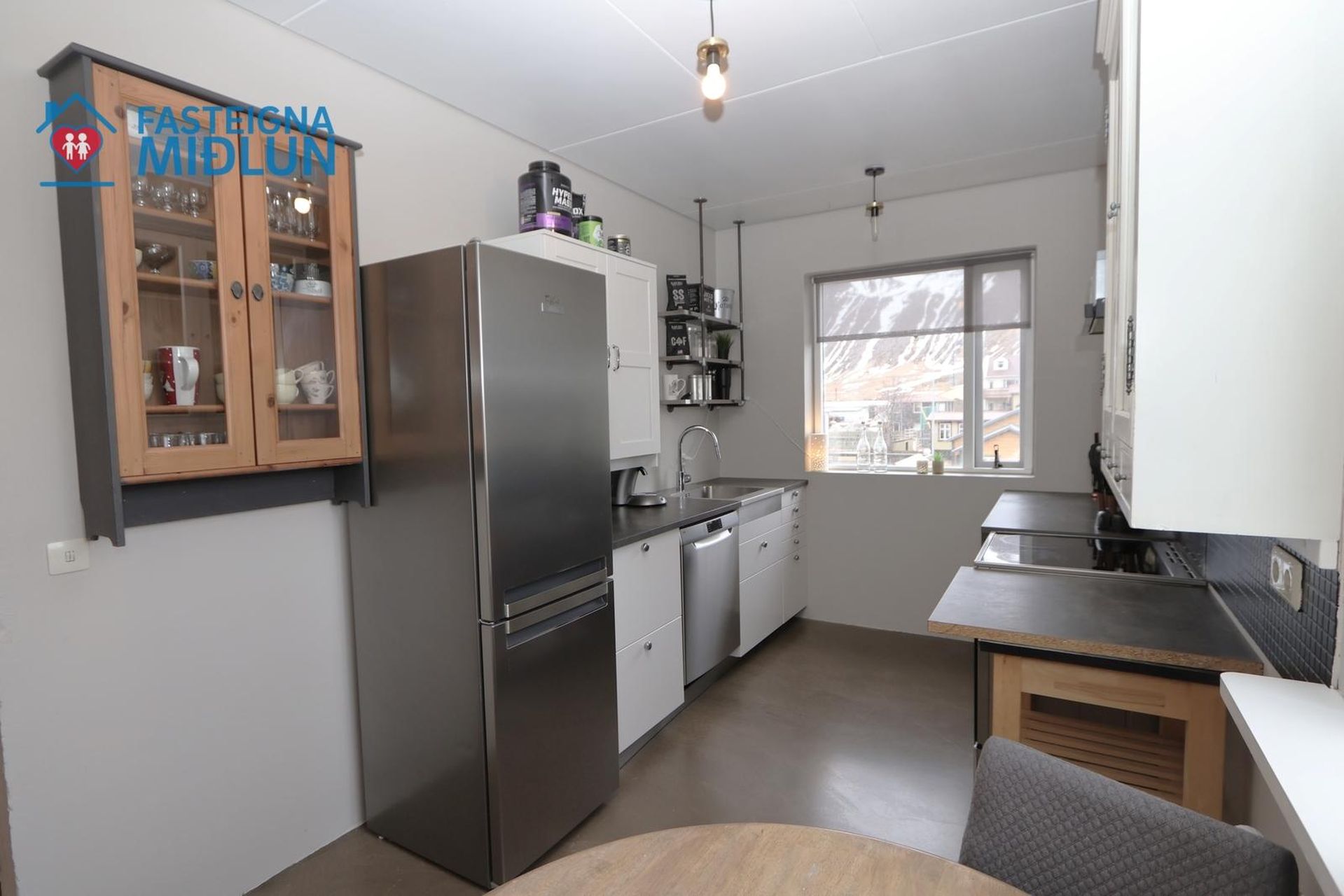 Um er að ræða þriggja/fjögurra herbergja hæð í miðbæ Siglufjarðar. Eignin samanstendur af anddyri, eldhúsi, stofu, tveimur svefnherbergjum, auka svefn/vinnurými, baðherbergi, þvottahúsi, geymslu og svölum. Mikil lofthæð er í stofu með stórum gluggum og frábæru útsýni. Allar vatnslagnir og frárennsli var endurnýjað 2023 og eru nýir ofnar í íbúðinni. Nýlegar hurðar eru á inngangi og svölum. Þak var endurnýjað fyrir einhverjum árum.