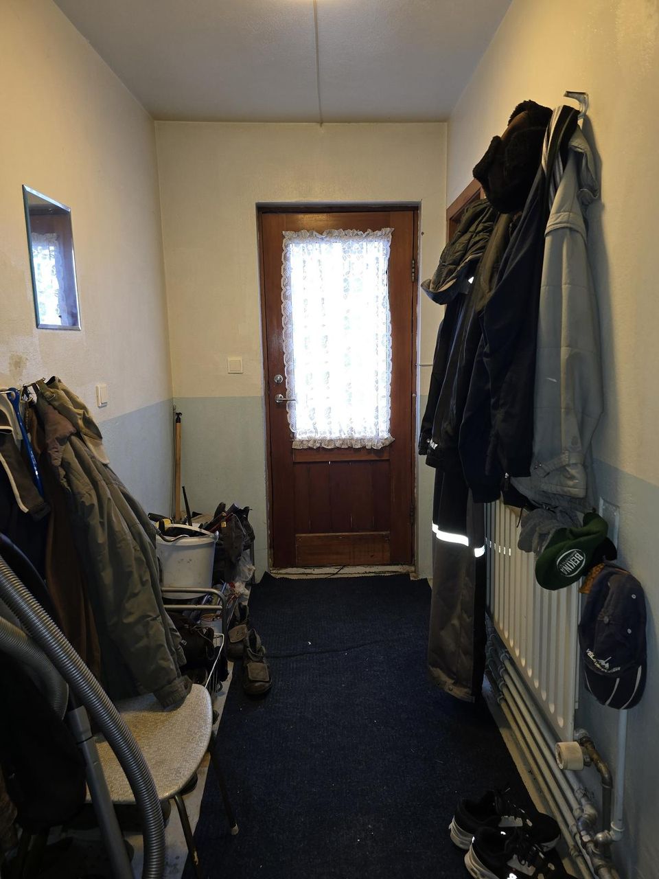 Forstofa er lítil og frá forstofu er komið á parketlagðan gang.
