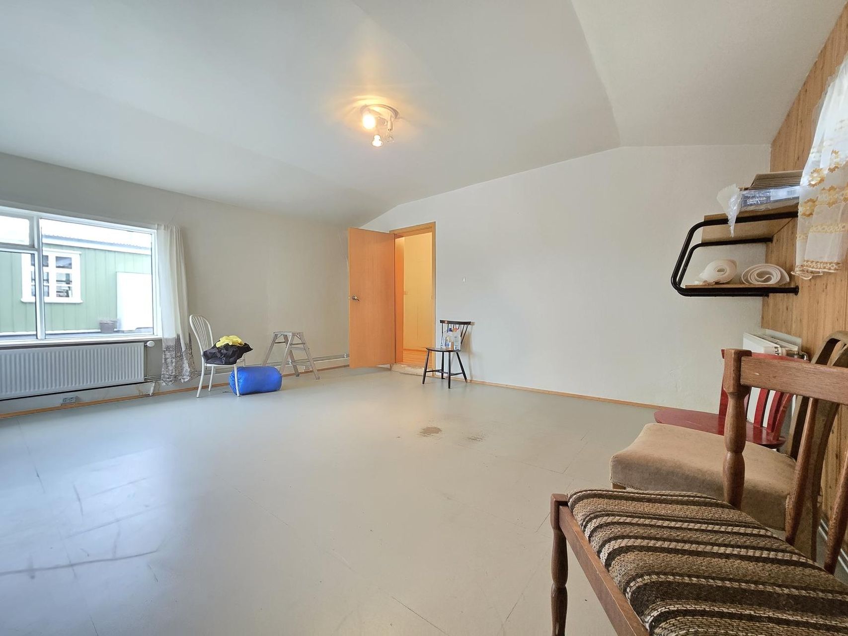 Tvö herbergi, minna herbergið er parketlagt og hitt er dúklagt.