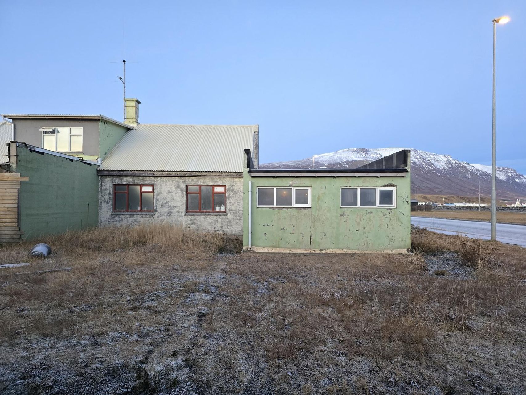 Þak og þakrennur eru í slæmu ástandi. Gler í glugga fylgir.