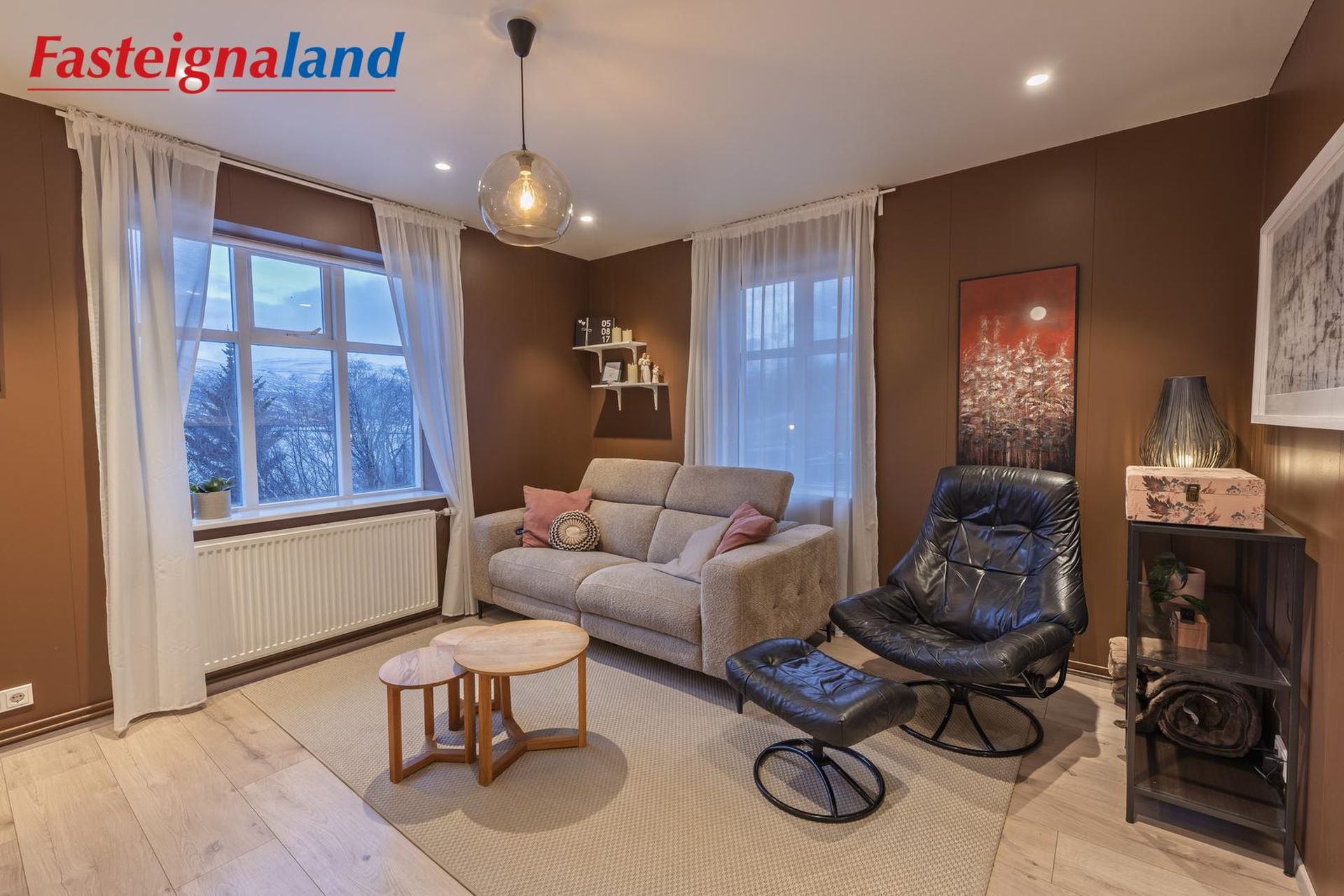Eignin er í þríbýlishúsi og er staðsetningin frábær í göngufæri við miðbæinn, skóla og sundlaugina.