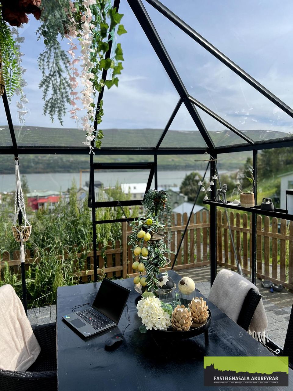 Glæsilegt einbýlishús með stórkostlegu útsýni. Mikið endurnýjað einbýlishús á eignarlóð í rólegu hverfi í innbæ Akureyrar. Húsið er 186 m² að stærð, fjögurra herbergja með tveimur baðherbergjum, og staðsett þar sem eitt fegursta útsýni bæjarins er – yfir innbæinn með fallegri fjalla- og sjávarsýn. Lóðin er að mestu frágengin með hellulögn og stórri, nýlagðri snjóbræðslu í tvöföldu bílaplani og hellulögn með snjóbræðslu sem liggur að heitapotti og fallegu gróðurhúsi, sem er nýtt sem glerstofa og auka rými fyrir samverustundir.