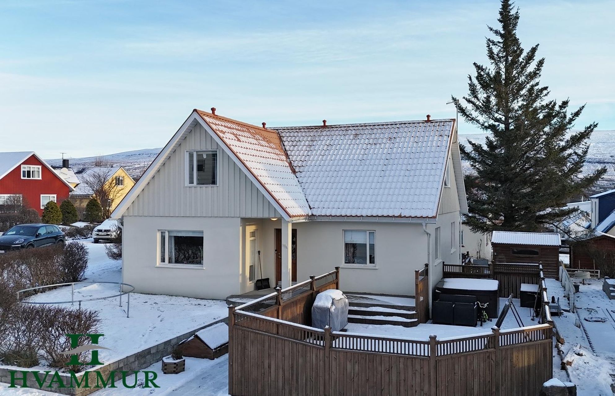 - Góð verönd, um 54 m² er við suður- og vesthlið hússins með heitum potti.