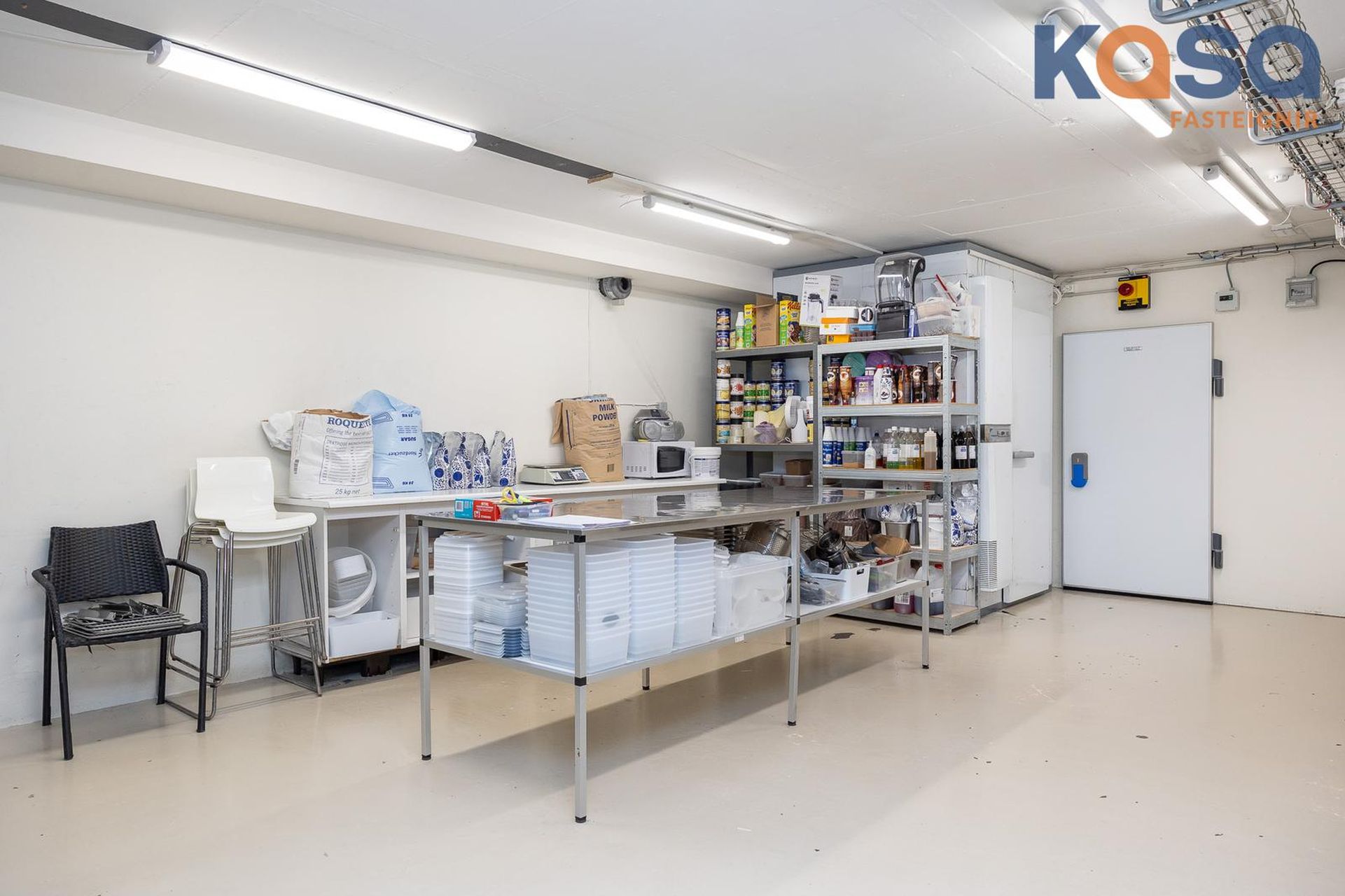 Í hinu rýminu á neðri hæðinni er lager, skrifstofurými og starfsmannaaðstaða. Rúmgott pláss og þar er vörulyftan.