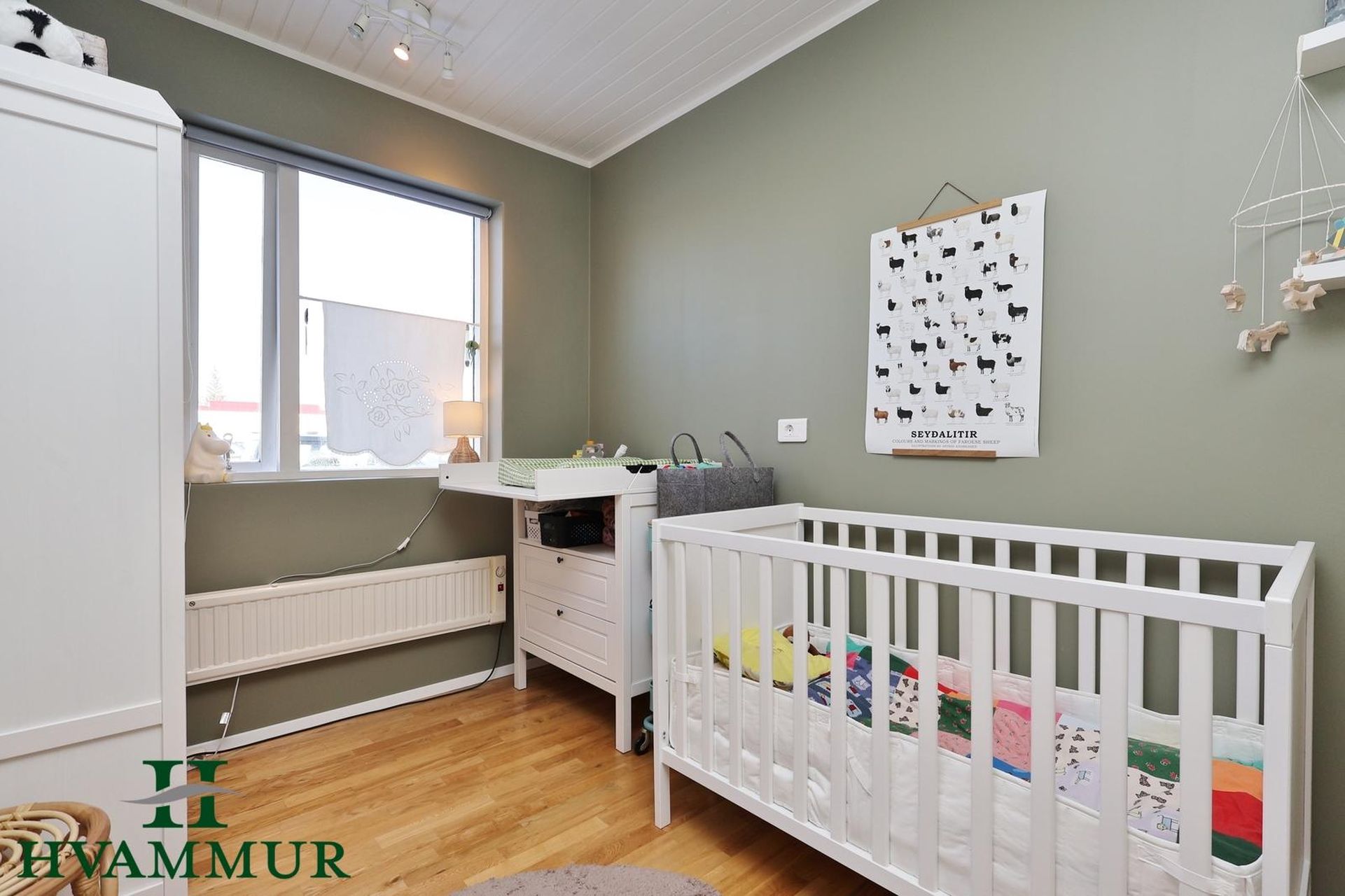 Eignin skiptist í forstofur, eldhús, stofu, þrjú svefnherbergi, baðherbergi, þvottahús, geymslu og geymsluloft.
