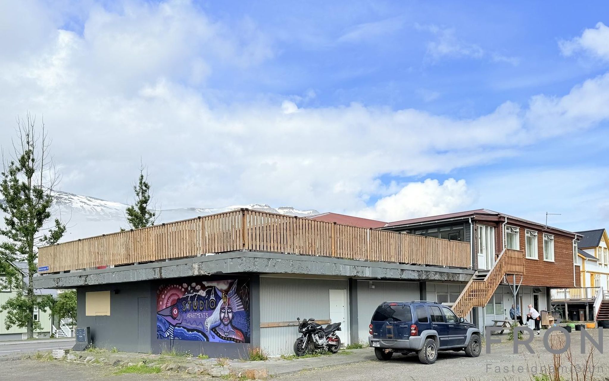 Góð sér bílastæði og opið rými við húsin sem gefur gott útsýni út og inn fjörðinn.