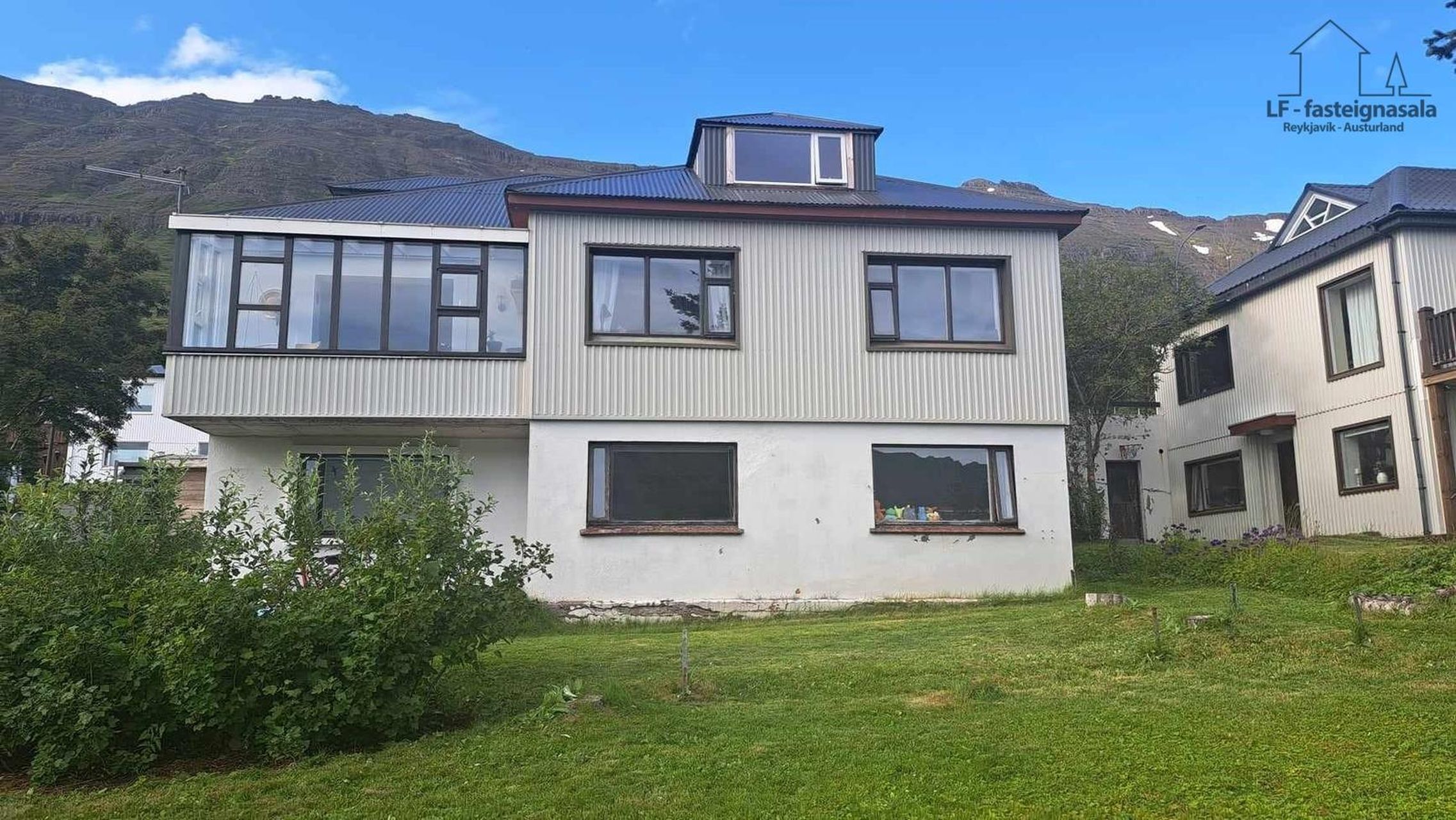 165,1 fm., efri hæð og óinnréttað ris, ásamt bílskúr í tvíbýlishúsi við Þiljuvelli í Neskaupsstað.