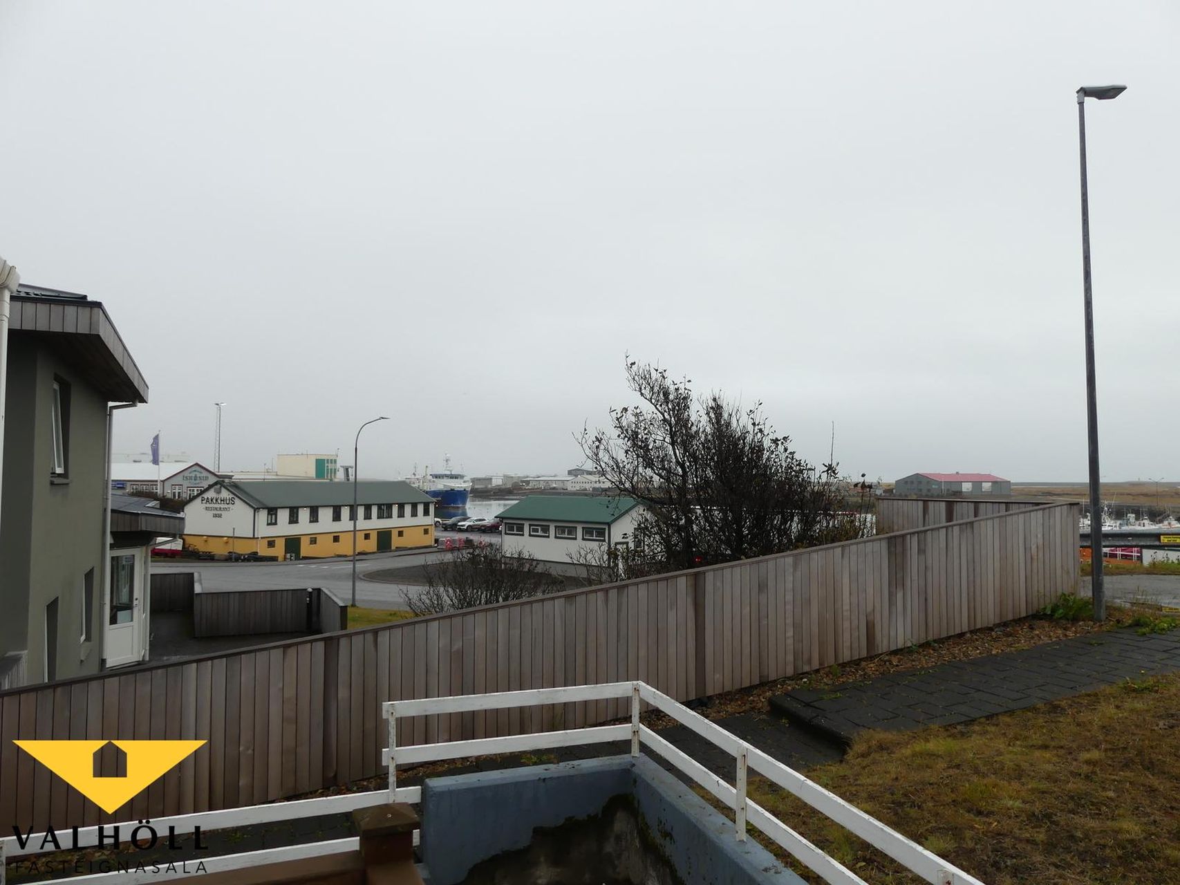 Anddyri og sólskáli: flísar á gólfi og gólfhiti. Sólskáli er rúmgóður og nýtist sem dagsstofa með góðu útsýni yfir höfnina.